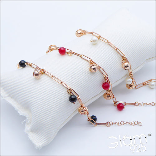 Bracciale maglia rettangolare con pietre dure e campanelle Ref. B DV1525