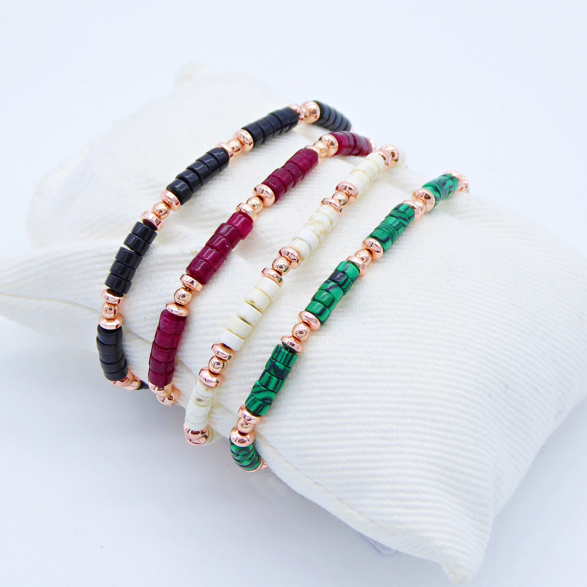 Pietre tondino: Onice nero, Rubellite, Corallo bianco, Malachite