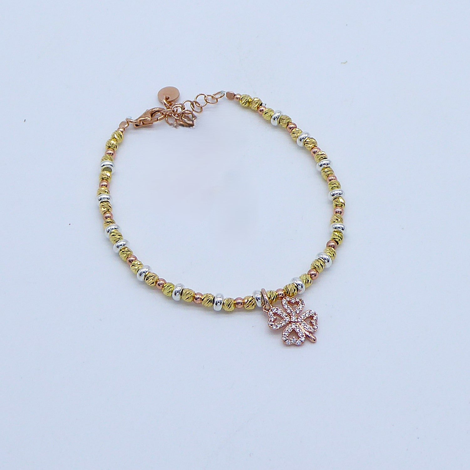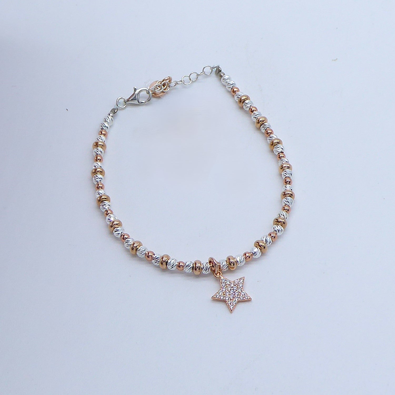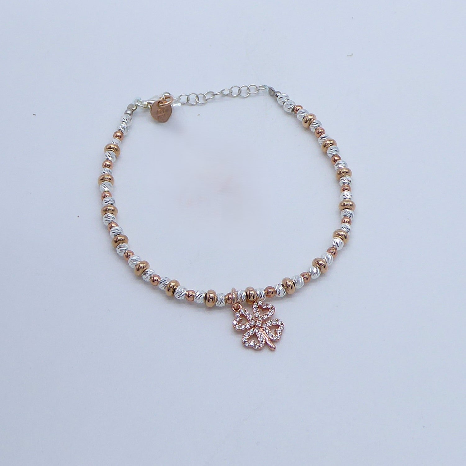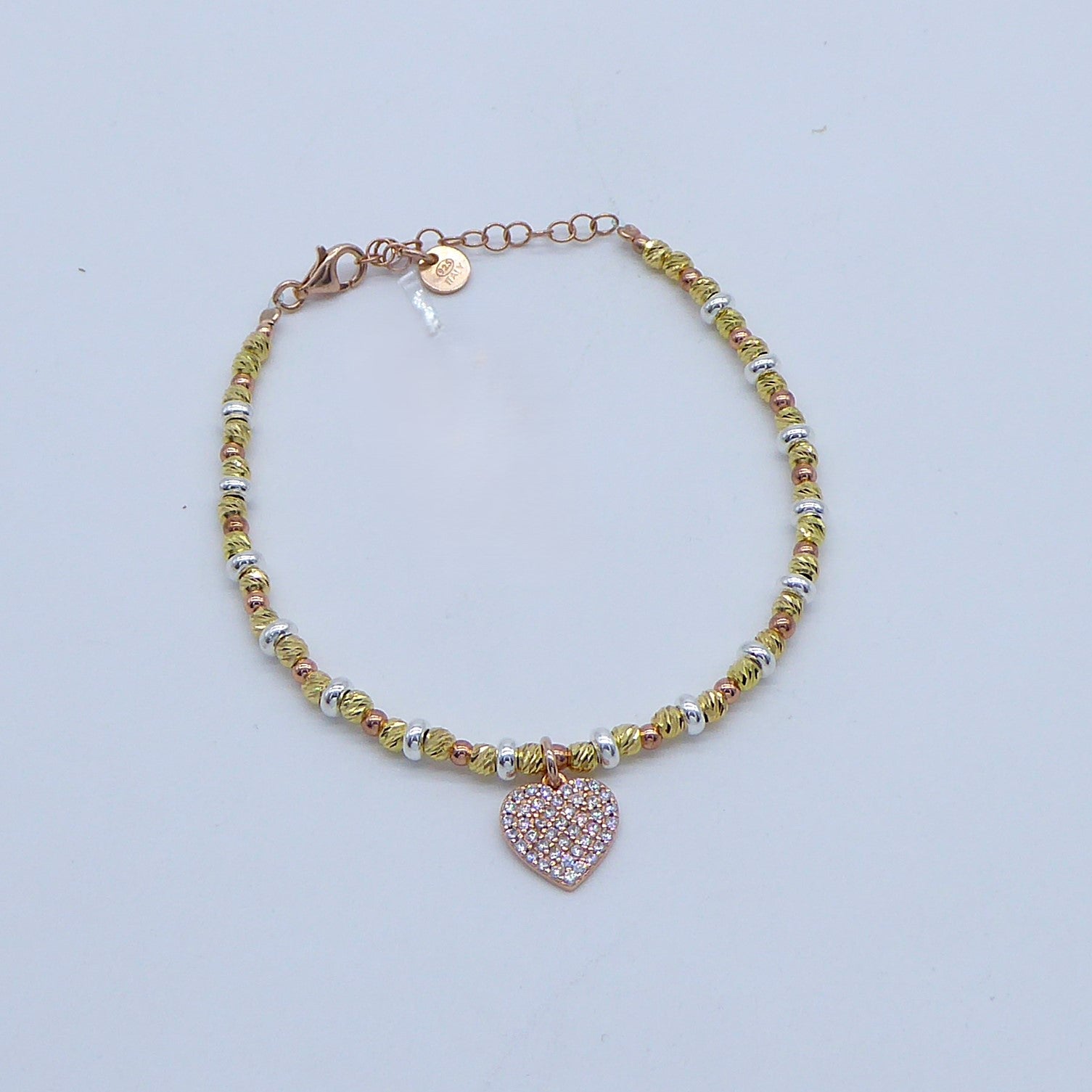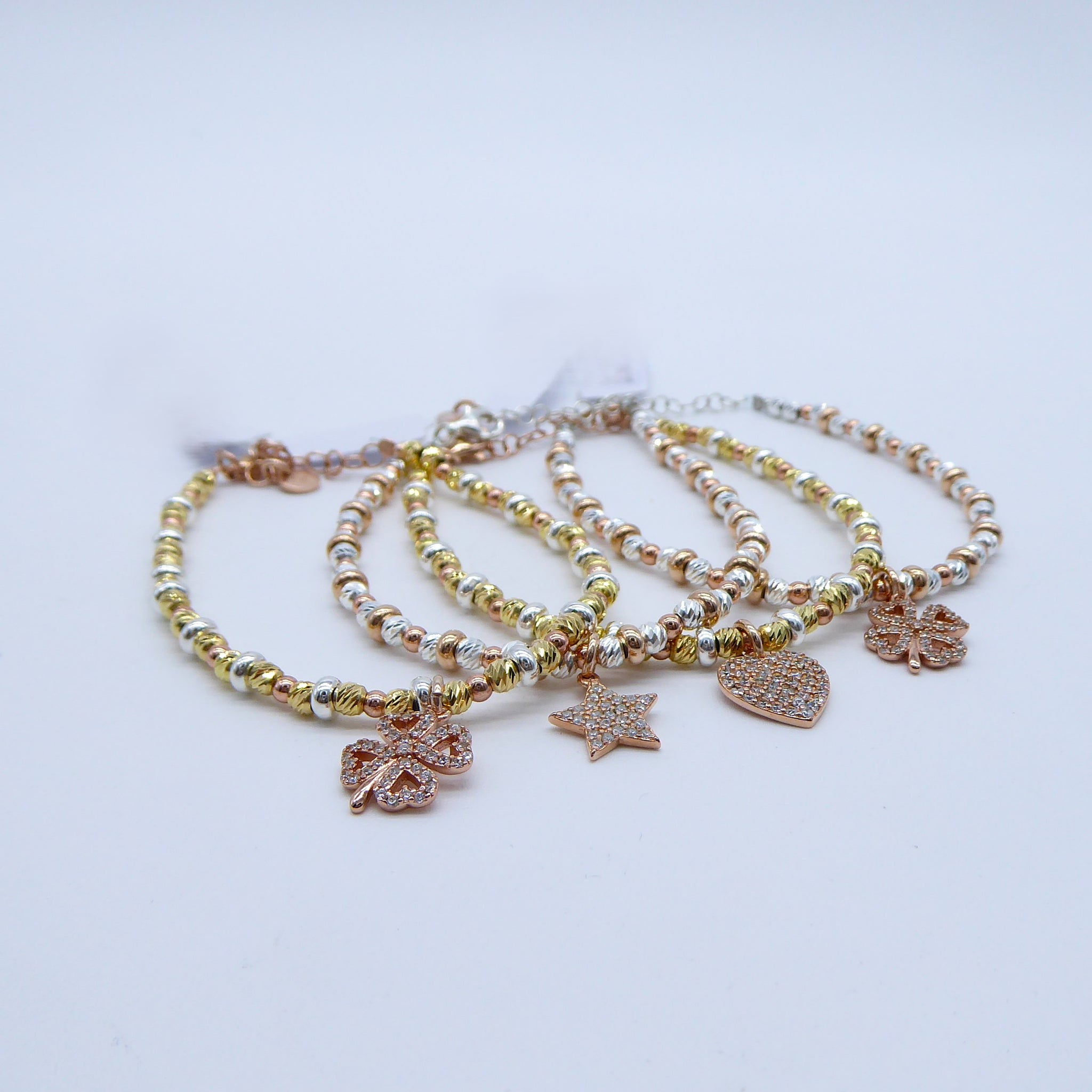 Braccialetto palline e ciambelline argento con ciondolo pavé B 793
