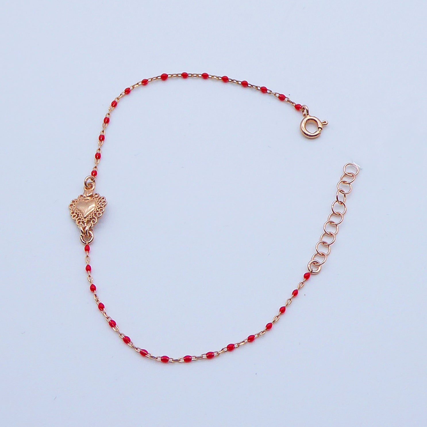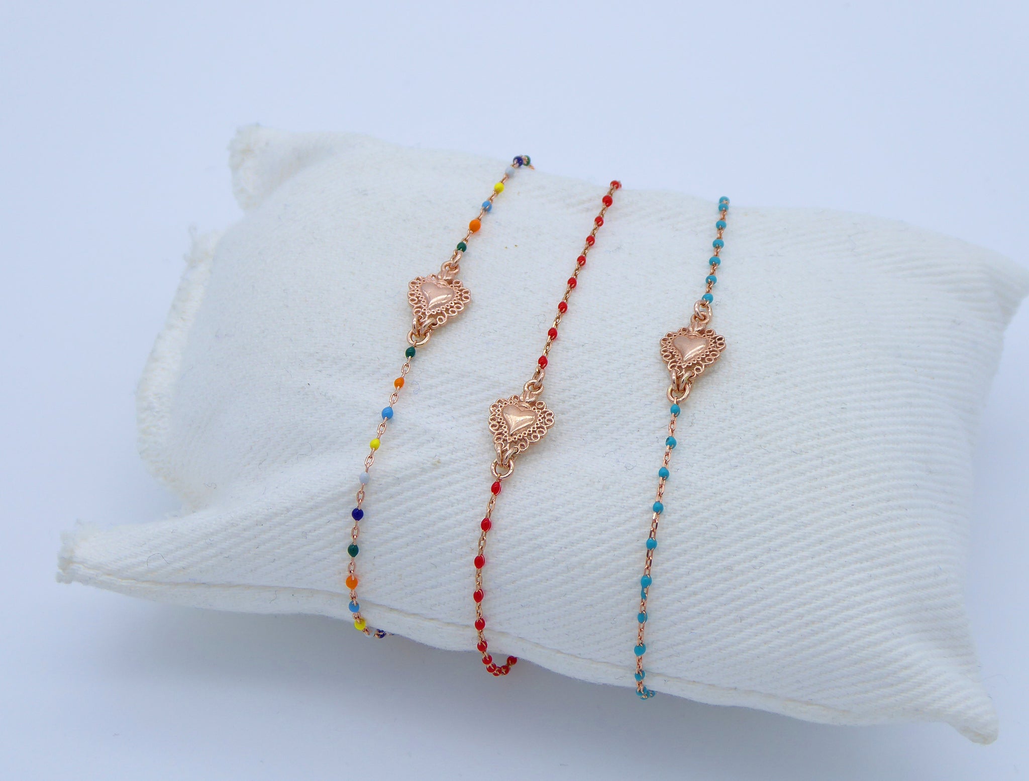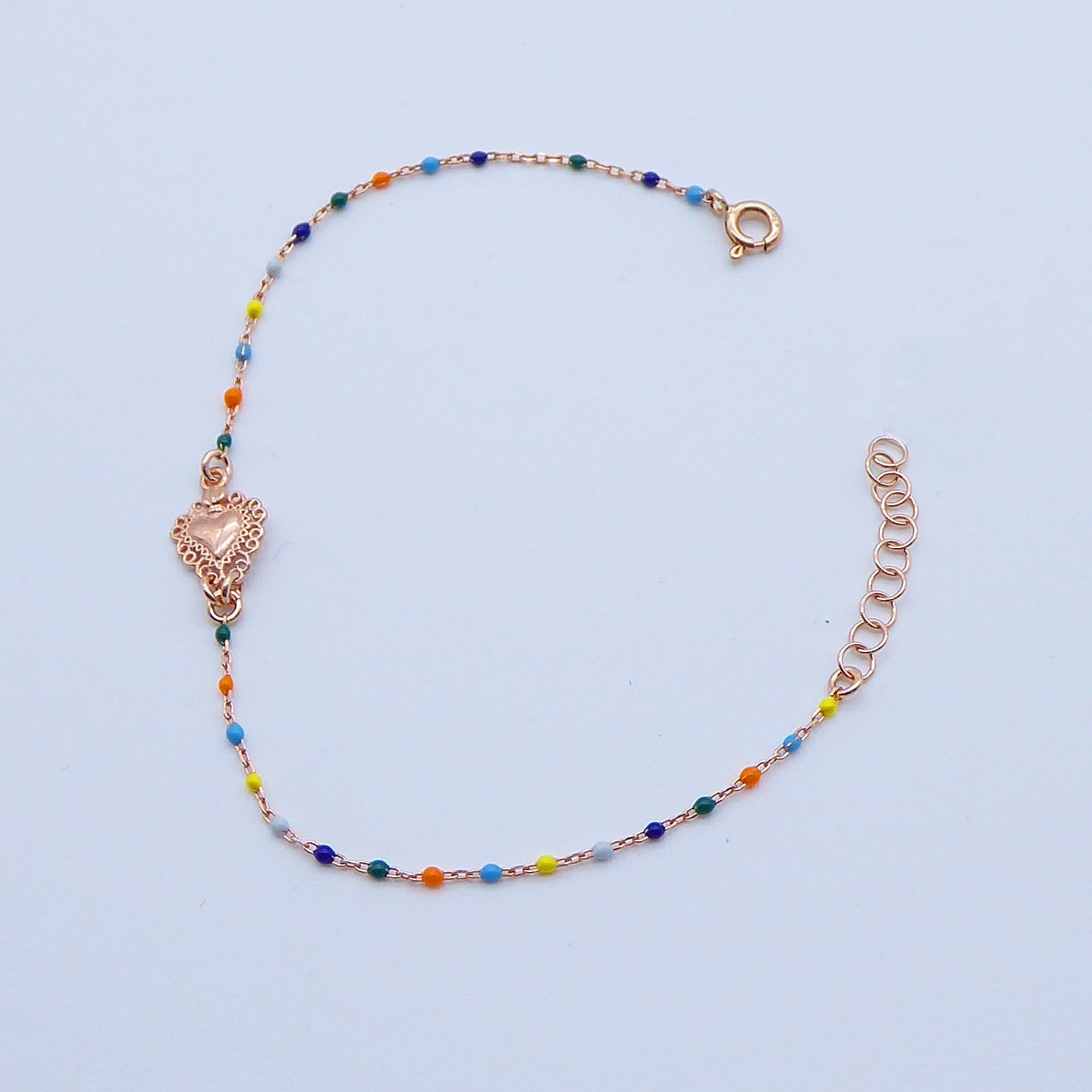 Braccialetto palline mini smaltate con Cuore sacro centrale Ref. B 855