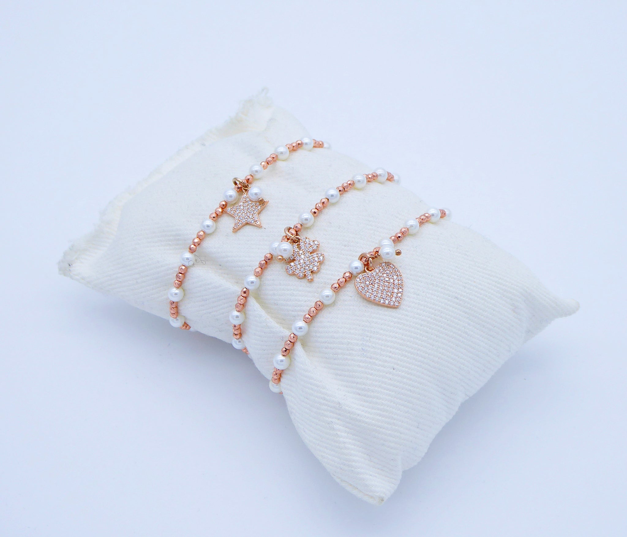 Ciondolo Cuore, Stella e Quadrifoglio con zirconi in argento rosa