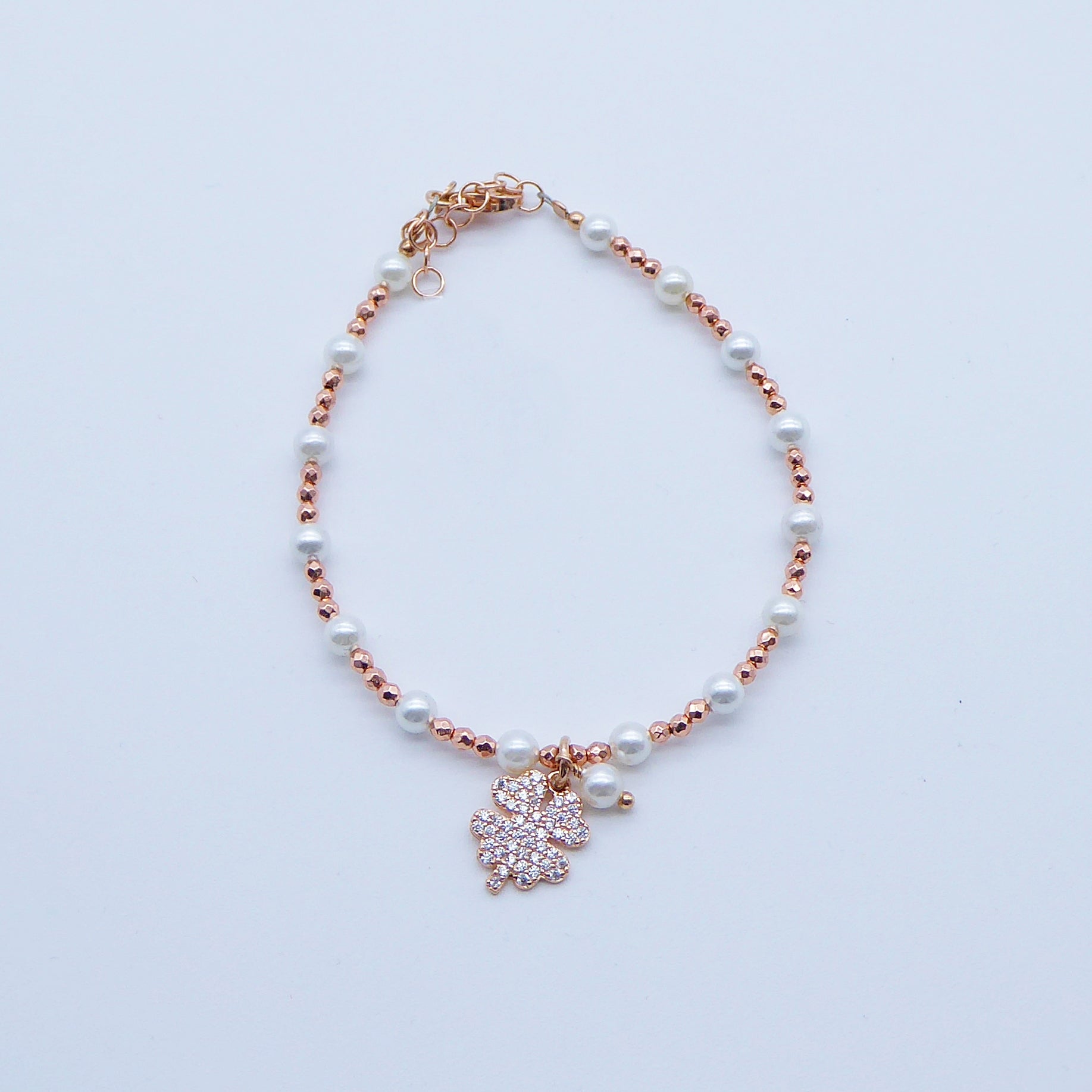 Braccialetto perle ed ematite con ciondolo a zirconi Ref. B 411