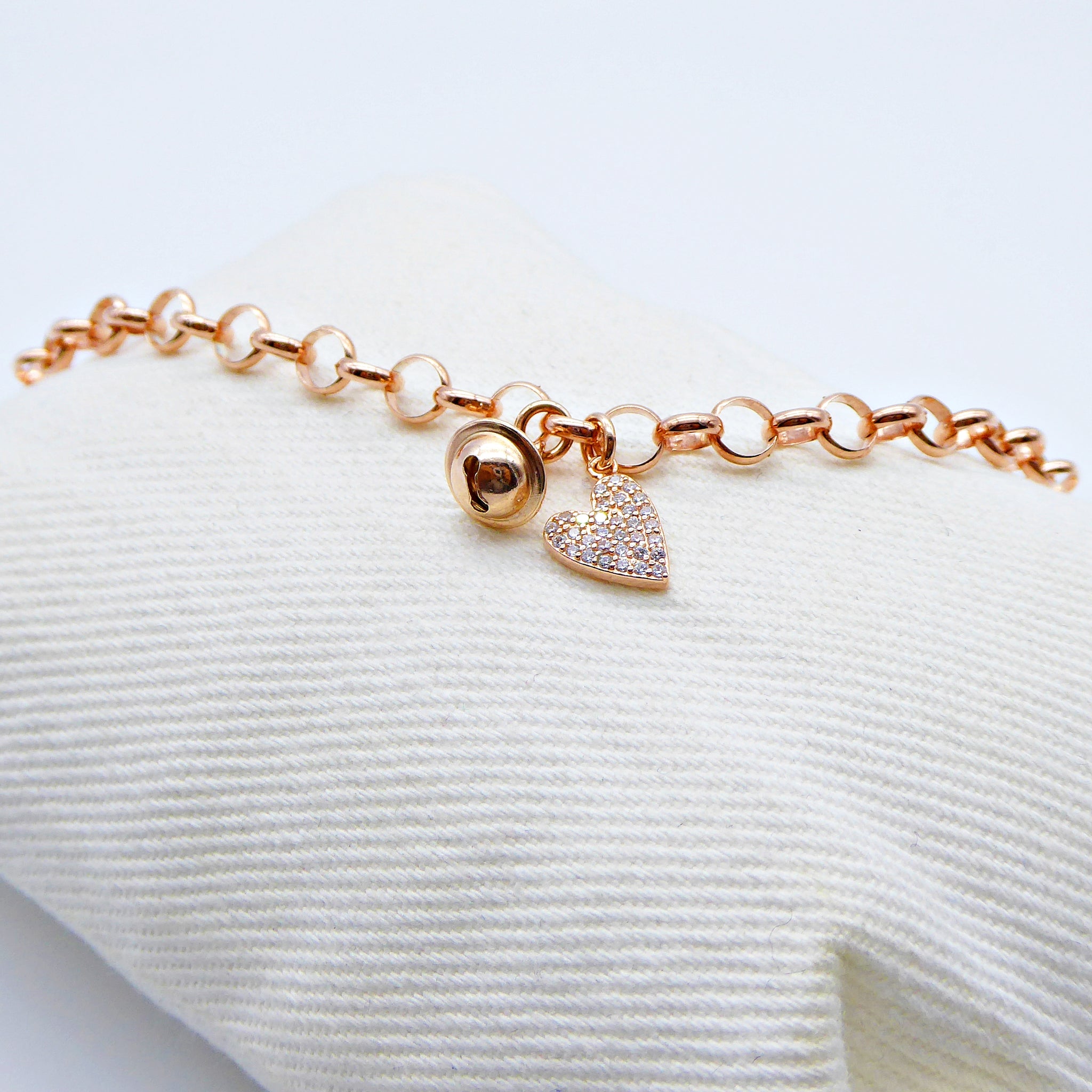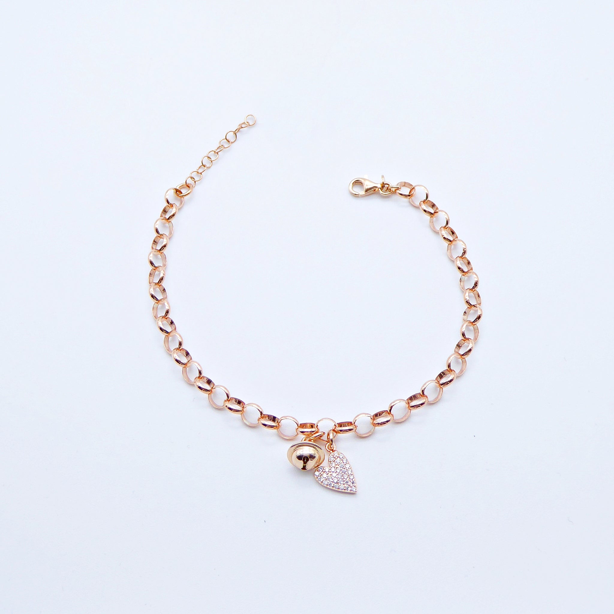 Braccialetto rolò con campanella e cuore allungato pavè B 882/Z