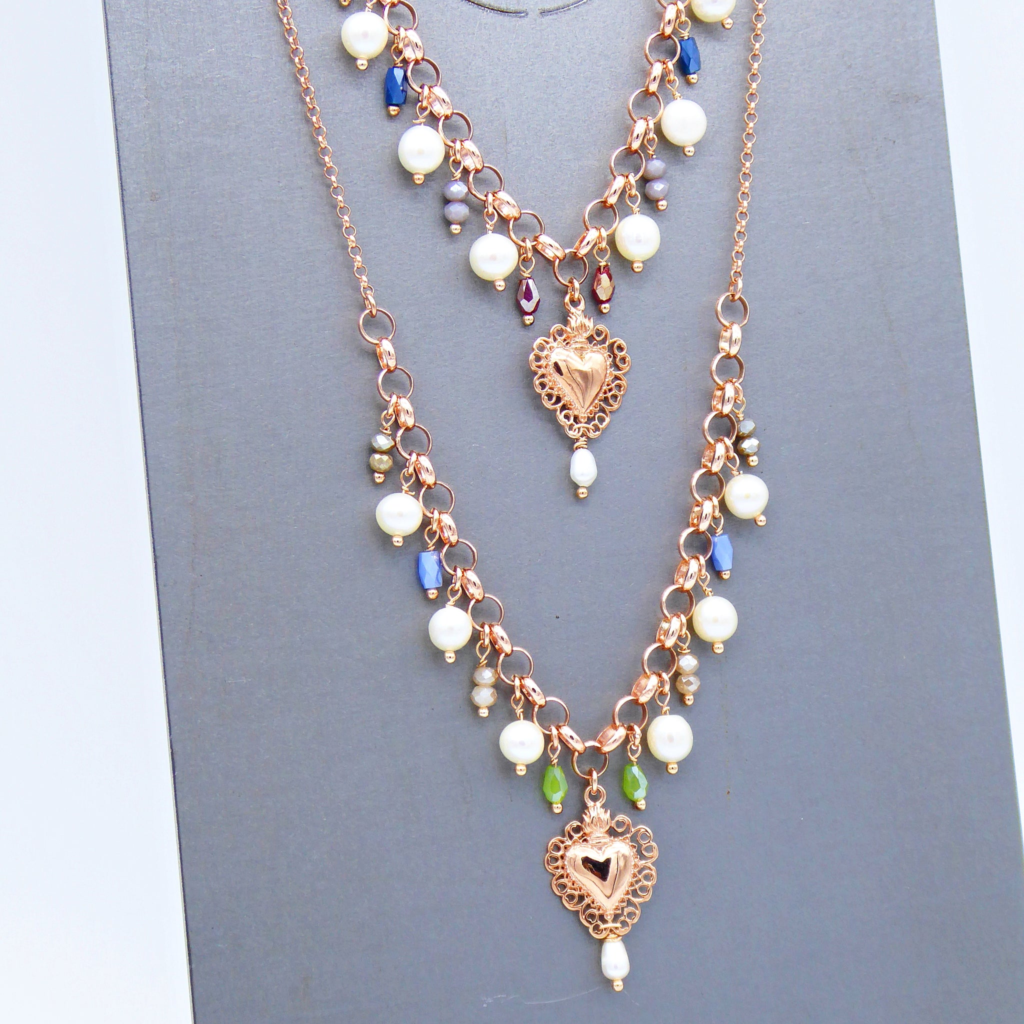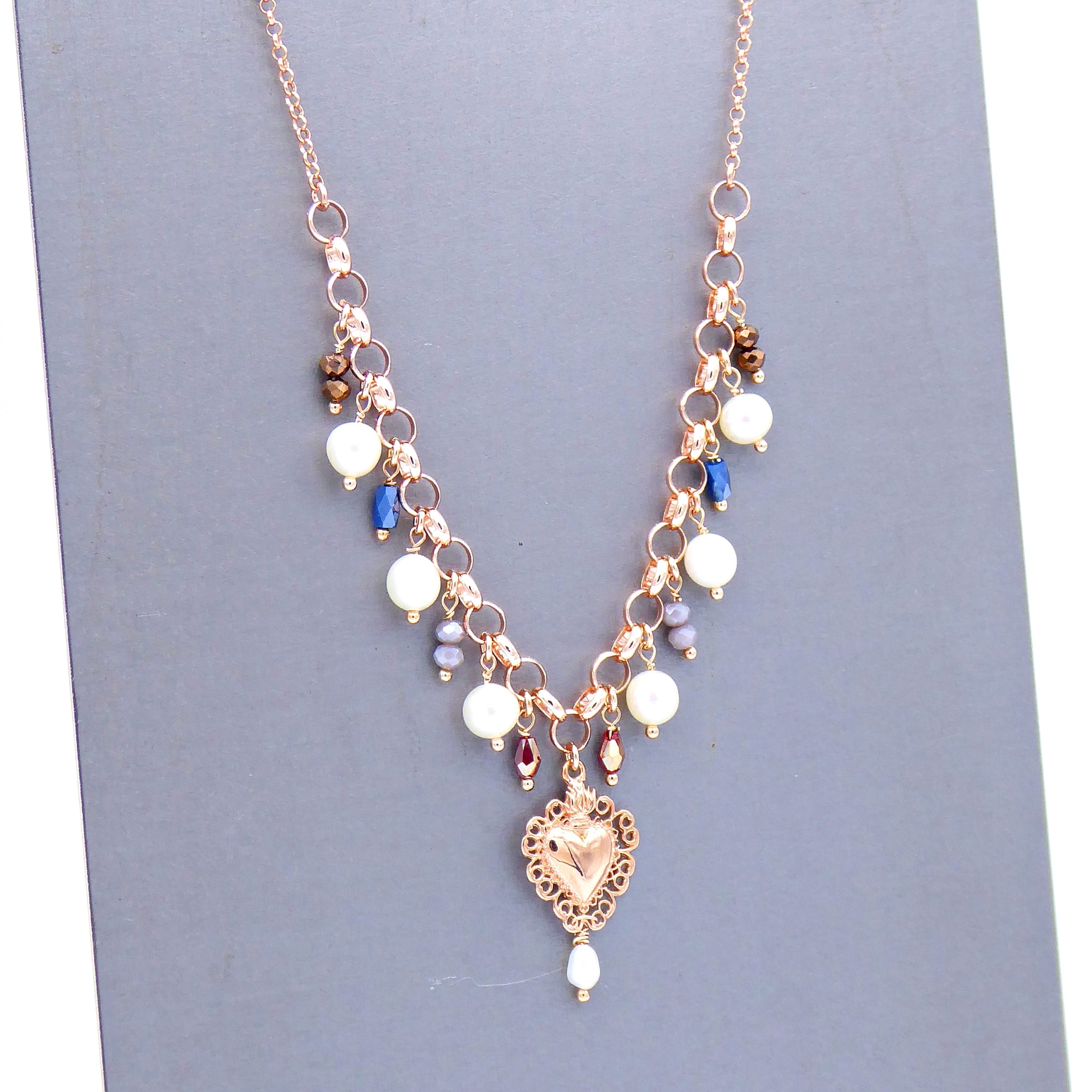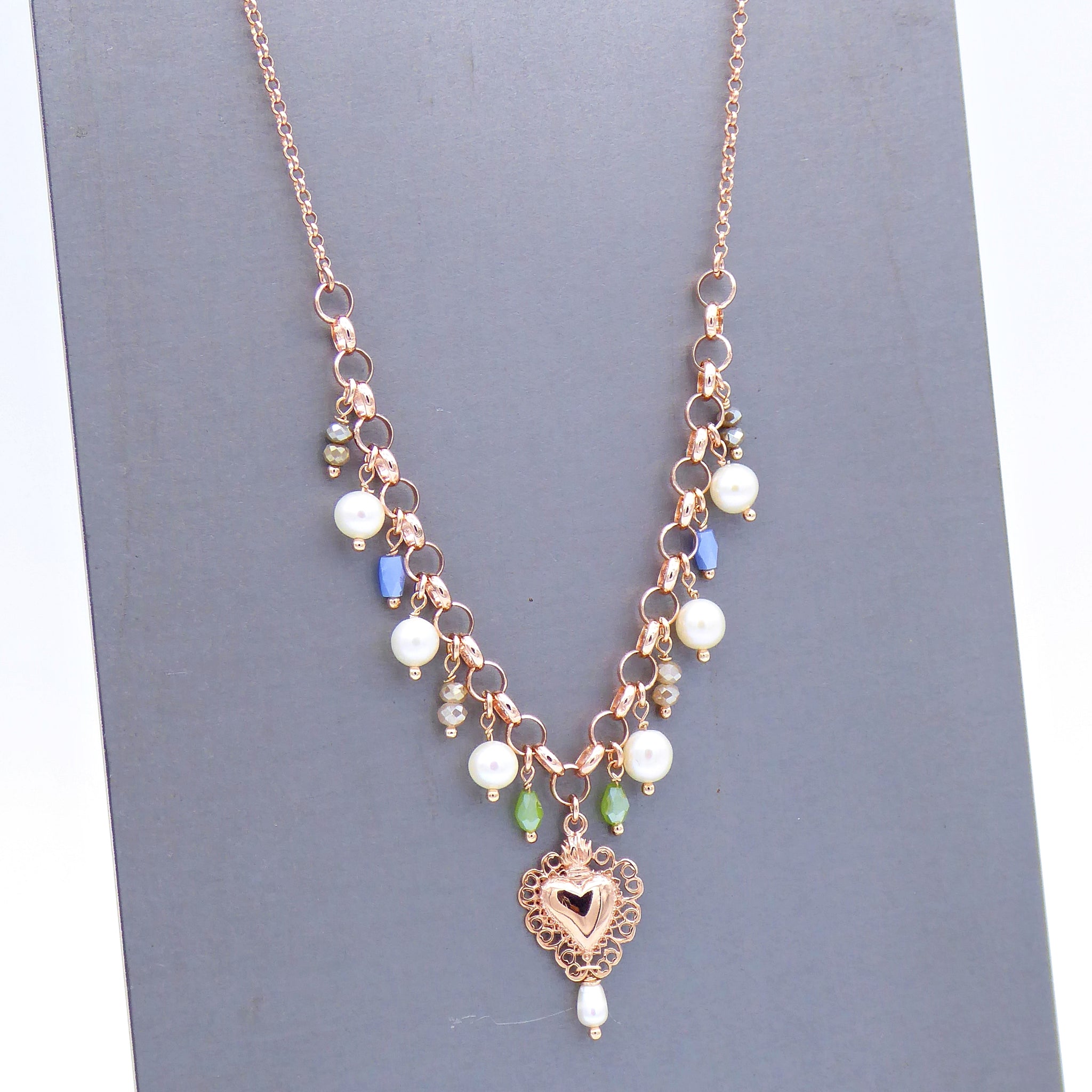 Collana 50cm forzatina/rolò grande con pietre e Cuore sacro PE 592