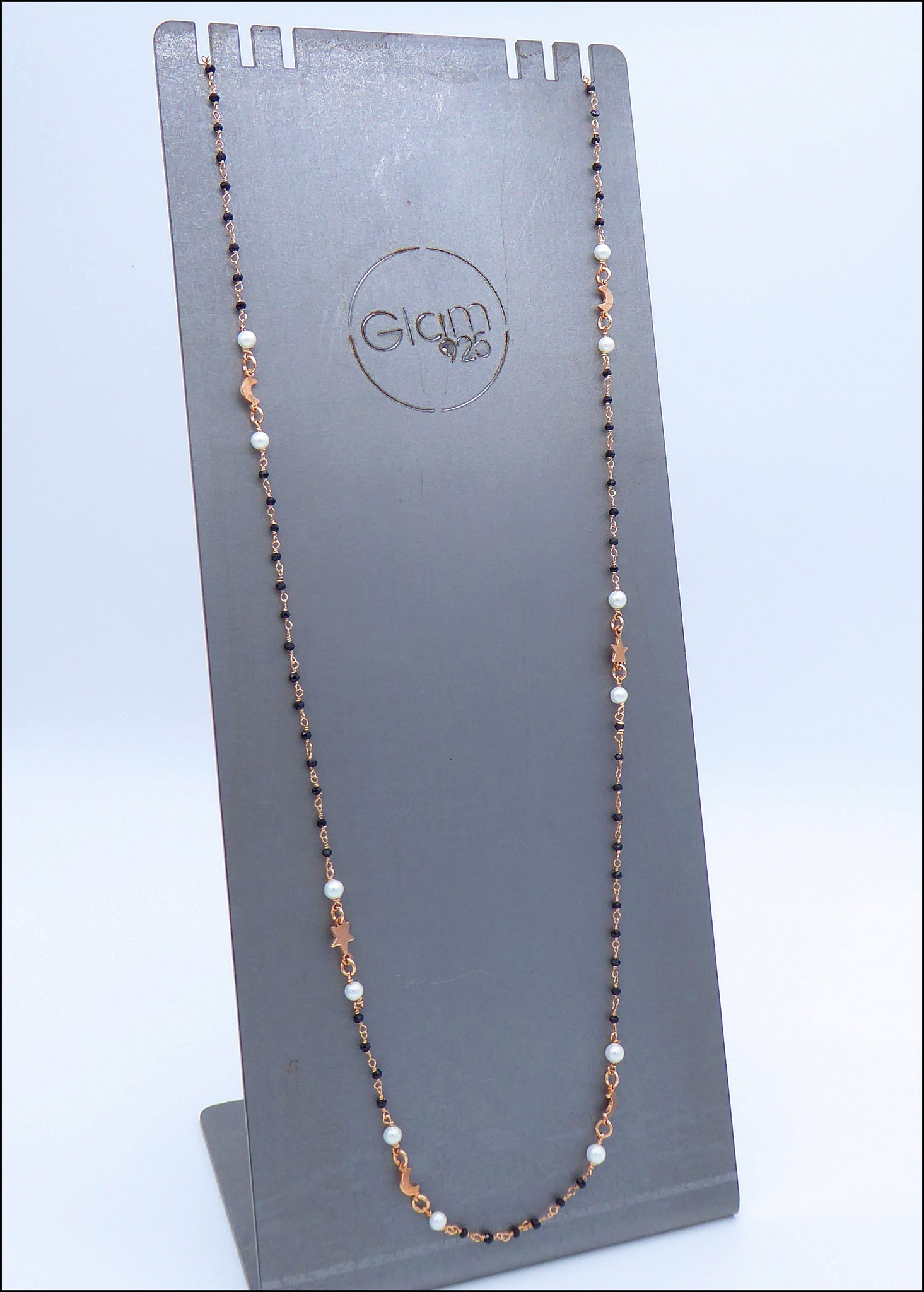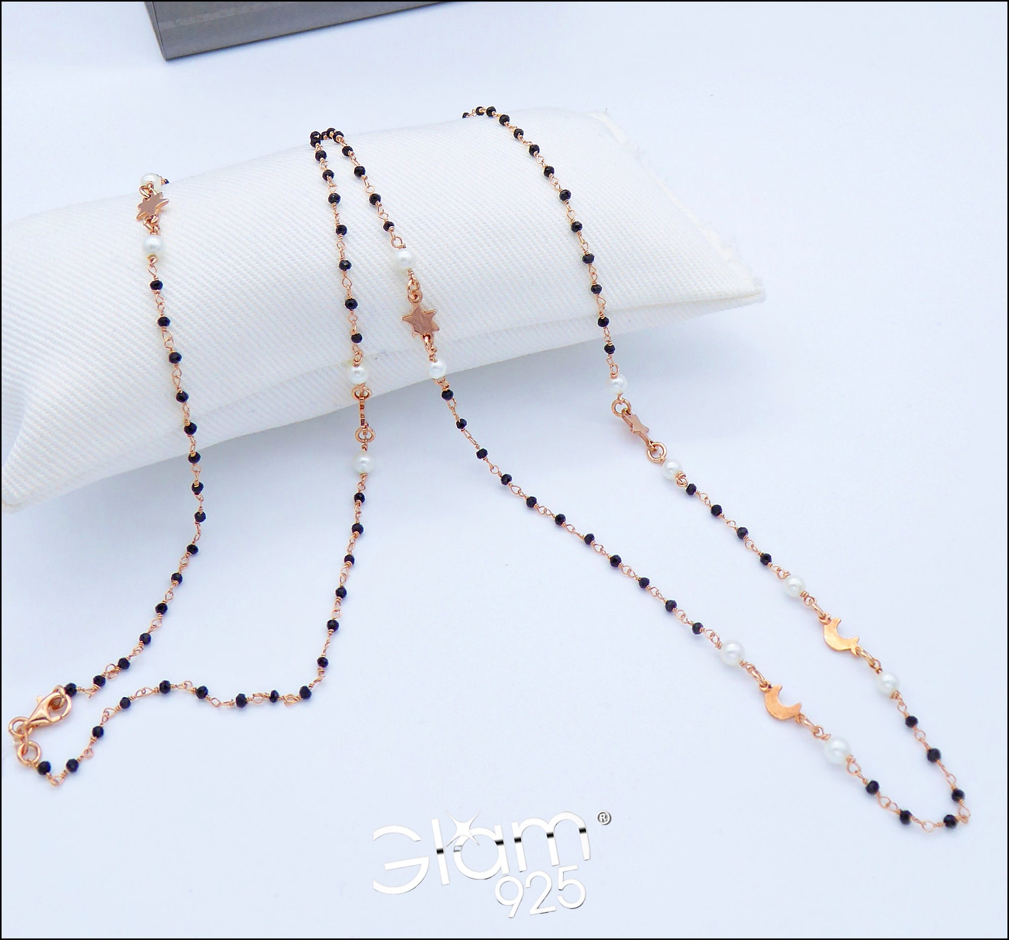 Collanina incatenato di spinello nero in argento rosa