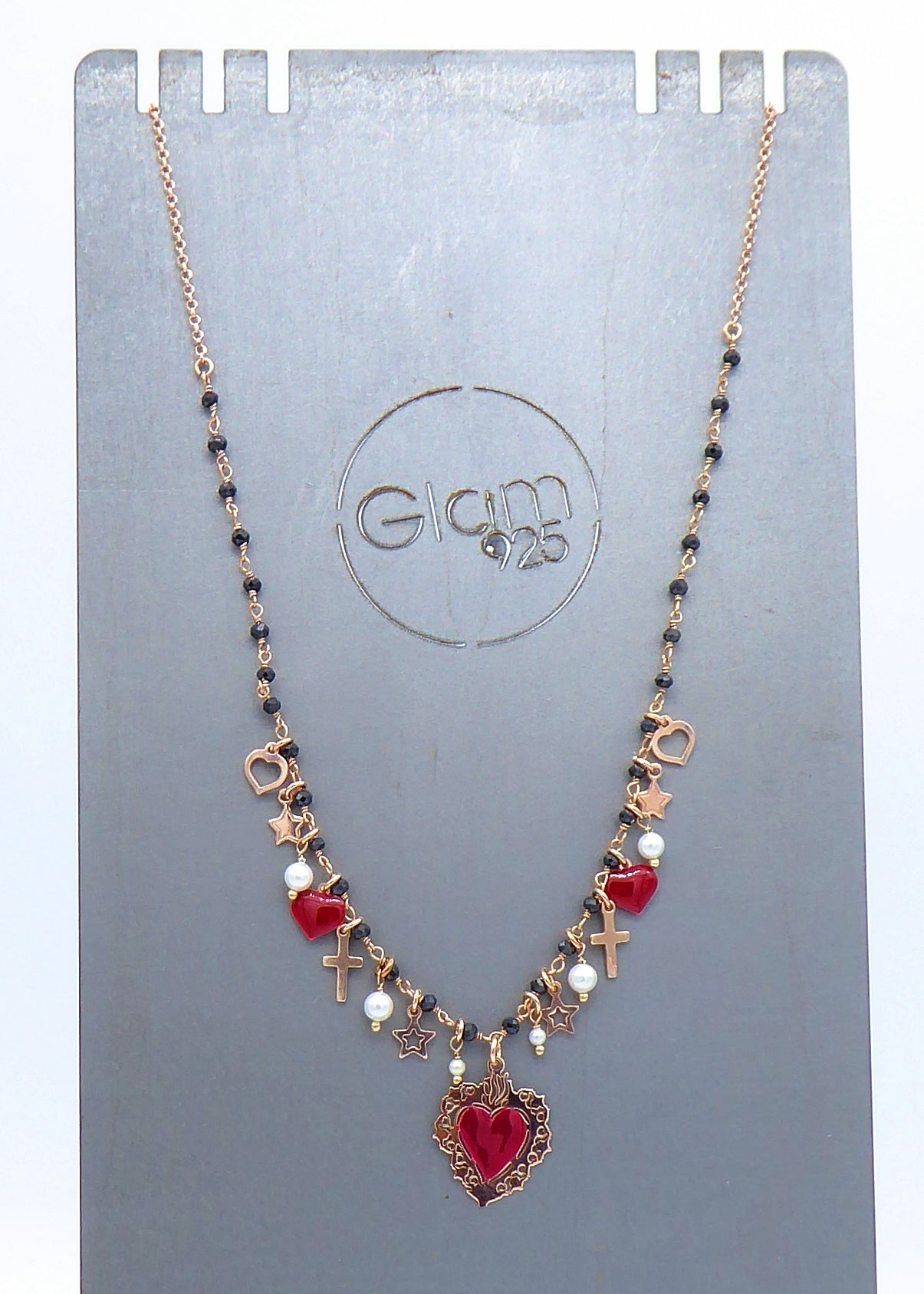Ciondolo Sacro Cuore in argento rosa e smalto colorato