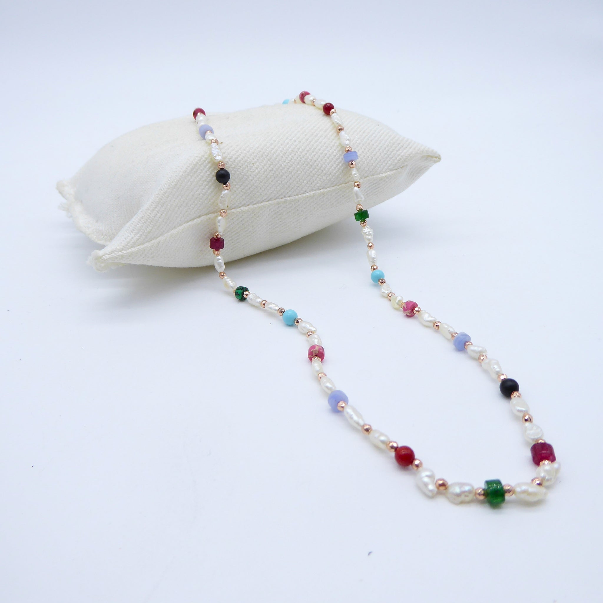 Mix pietre naturali : Pasta turchese, corallo rosa e rosso, agata nera, calcedonio, malachite, rubellite