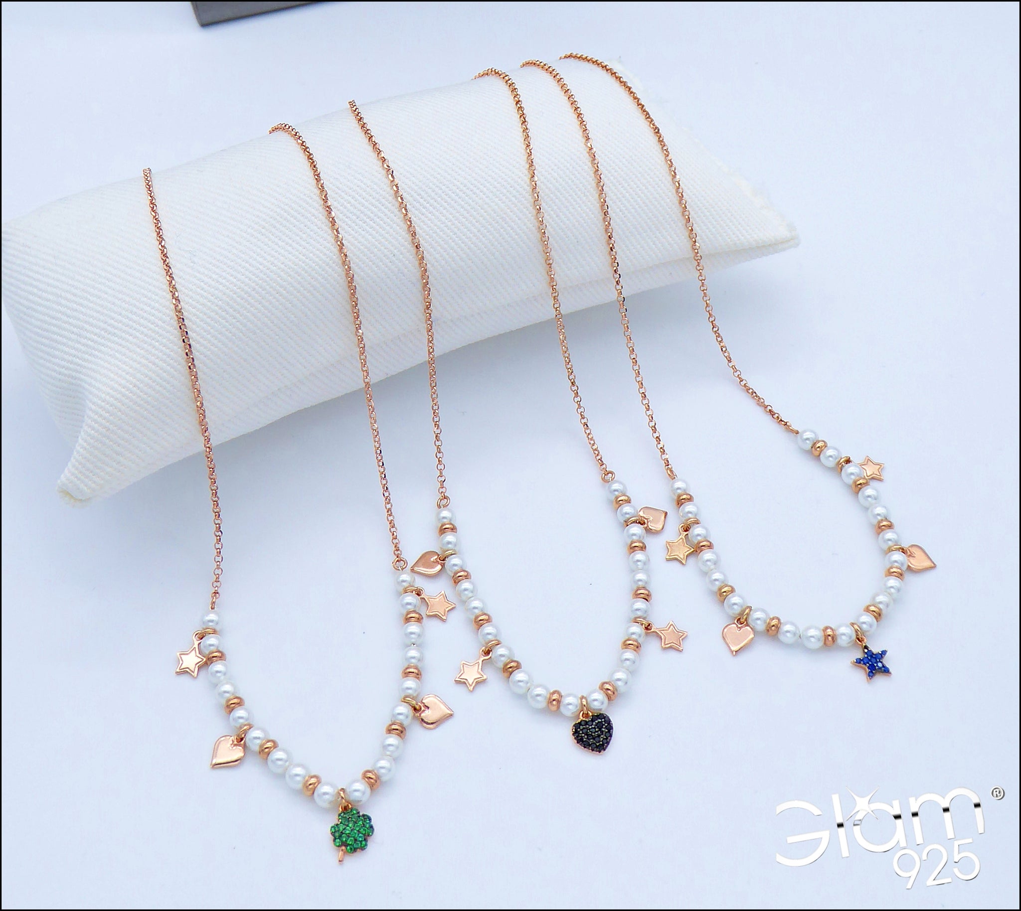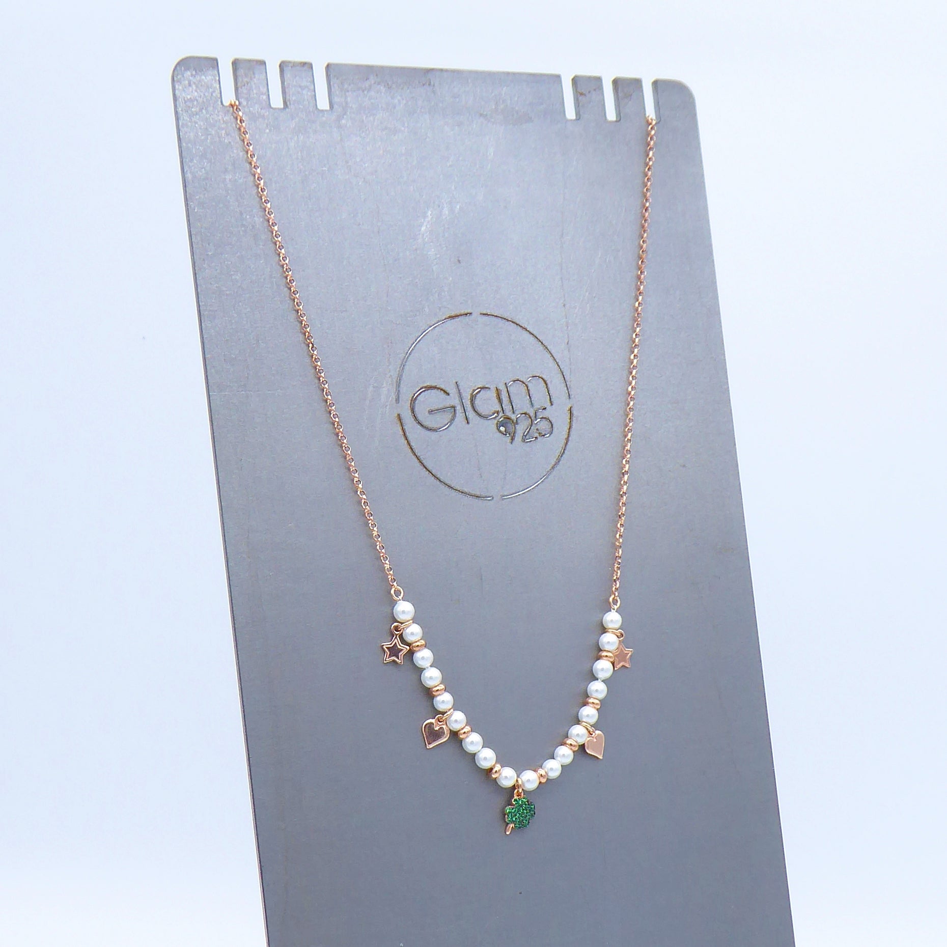Collana perline e ciondoli misti cuore stella Ref. PE 987