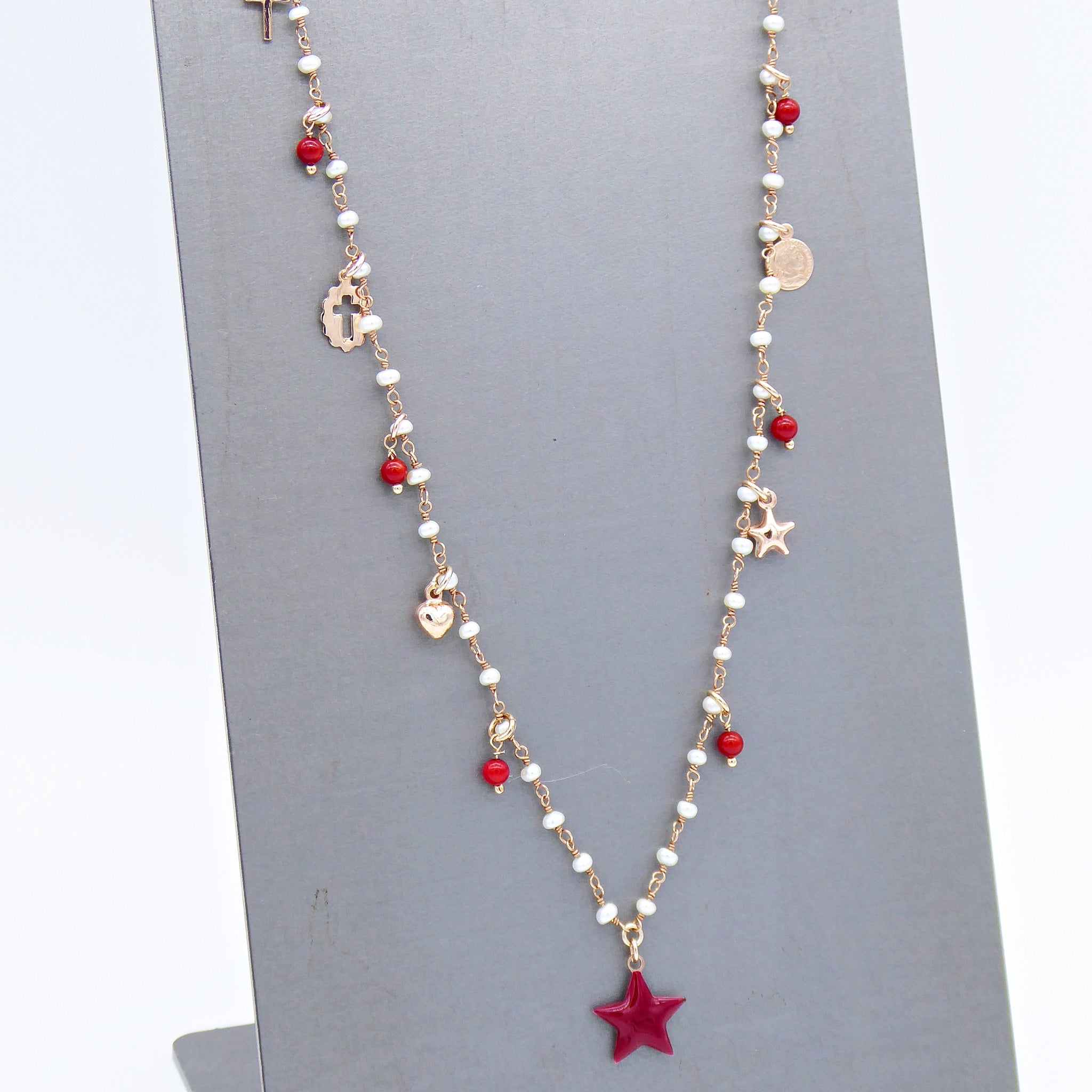 Collanina incatenato/rolò mini con ciondoli mix e pietrine PE 135/3