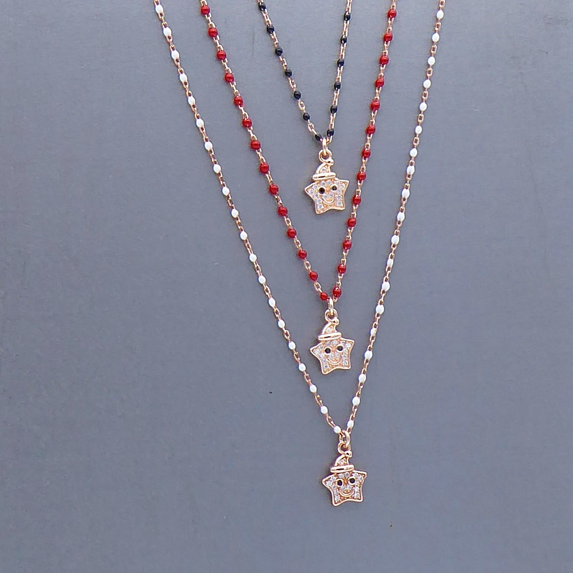 Collanina palline smaltate con ciondolo stellina sorridente PE 219