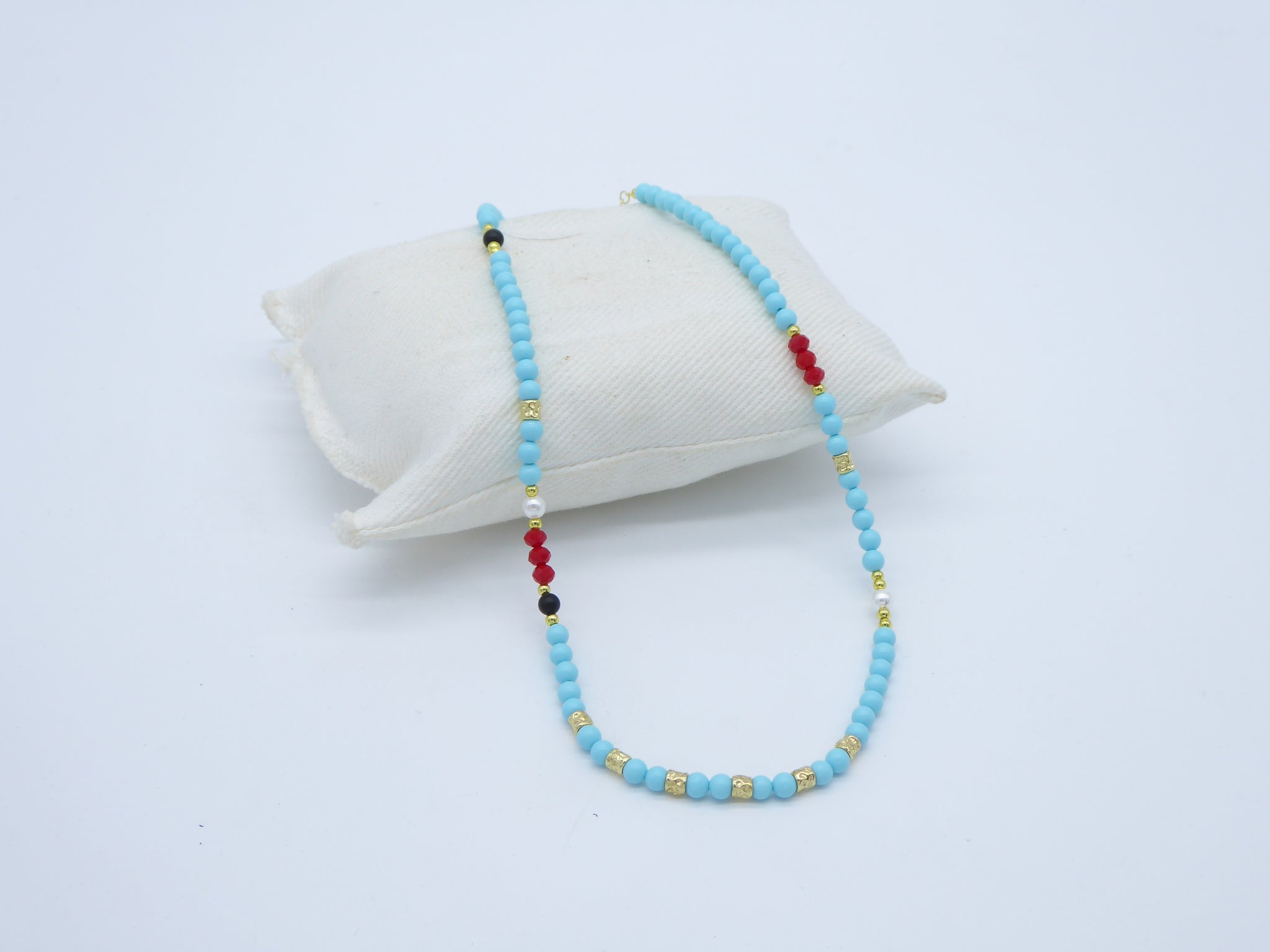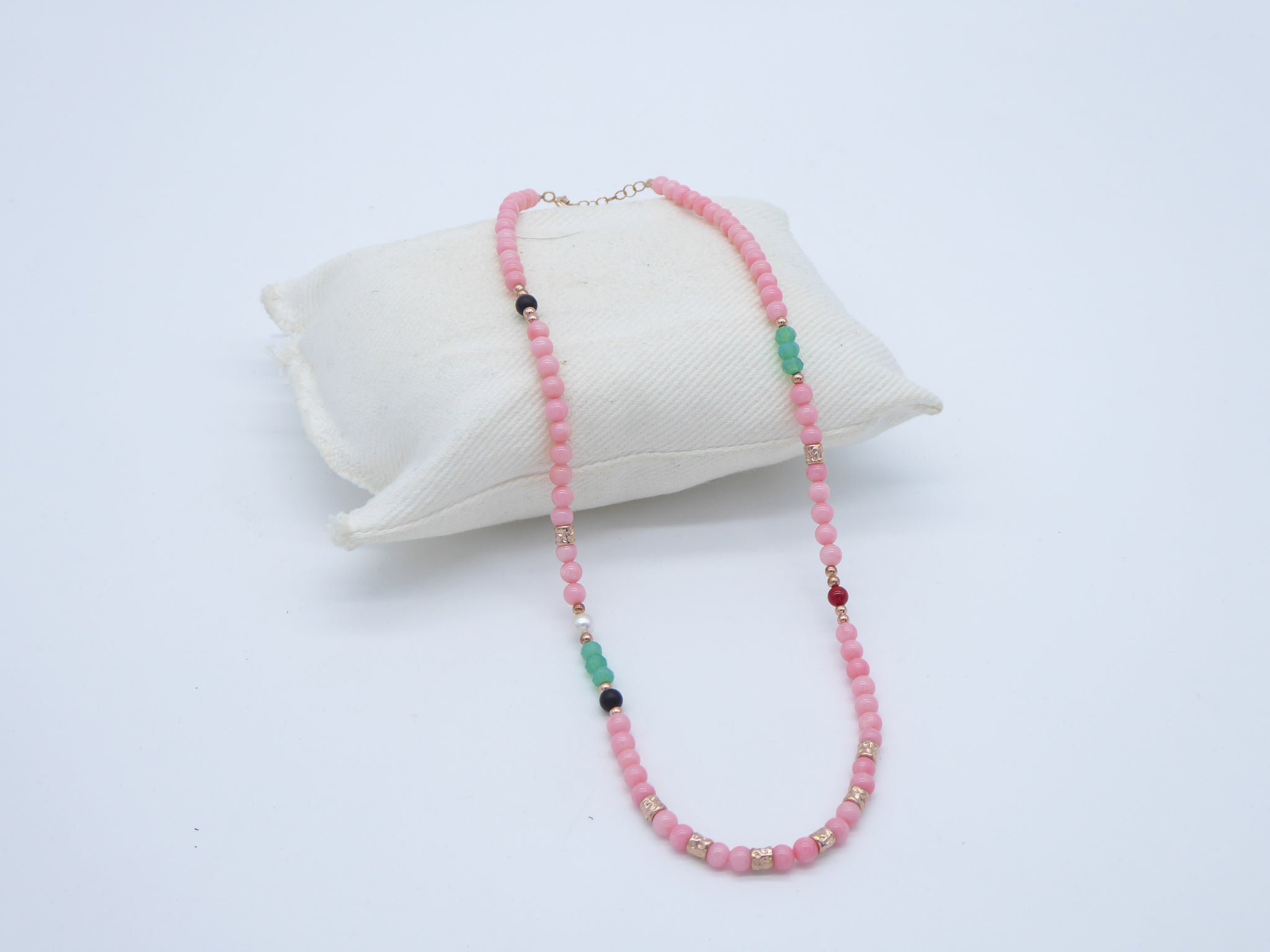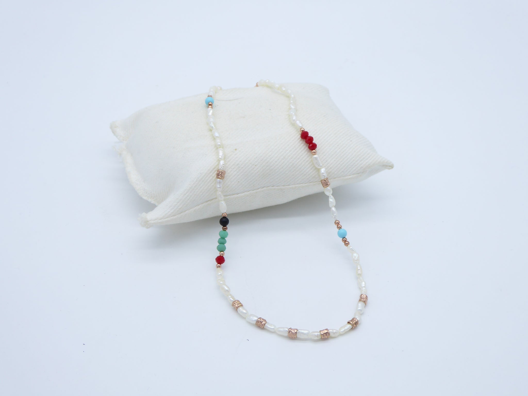 Pietre naturali: Pasta turchese, Corallo rosa, Perla, agata nera