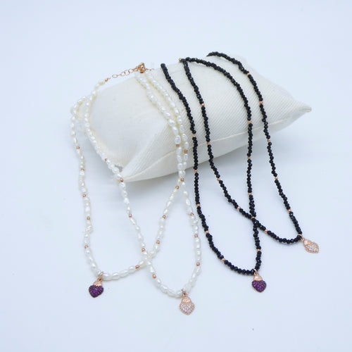Collanina micro pietre con ciondolo mini cuore sacro zirconi PE 574 - 575
