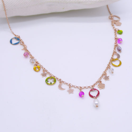 Collanina swarosky colorati, chanel e pietre naturali PE474
