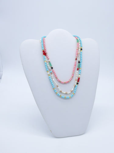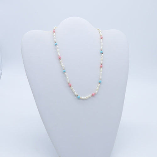 Collanina perle a chicco,pasta turchese e corallo rosa PE 352