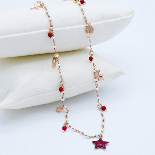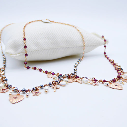 Collanina incatenato/rolò mini con ciondoli mix e pietrine PE 135/3