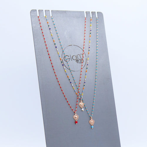 Collanina palline mini smaltate con Sacro cuore mini in argento rosa Ref. PE 855