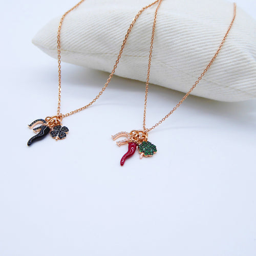 Collanina portafortuna zirconi e smalto Ref. PE 462