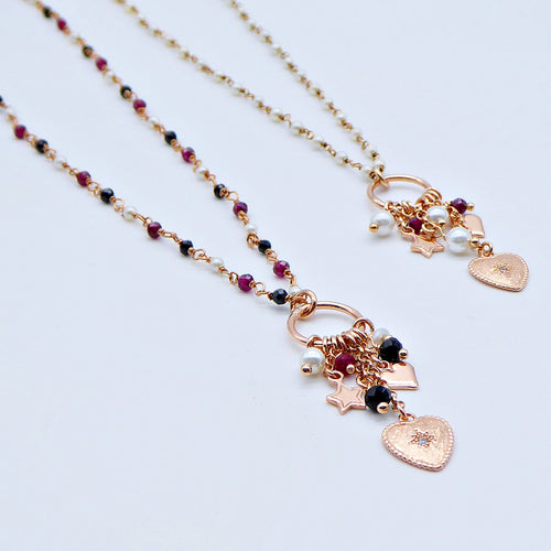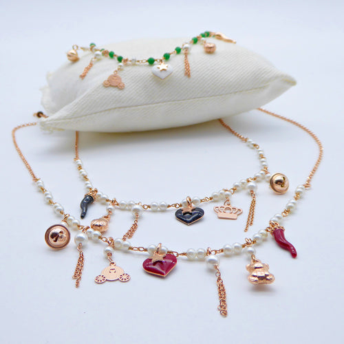 Collanina forzatina con ciondoli cuori/stelle e pietre Ref. PE 267