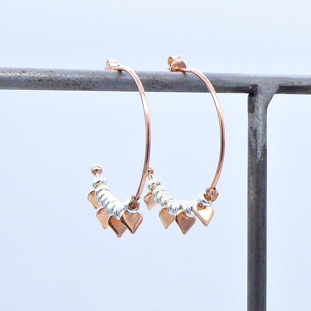 Orecchini a cerchio inserti ciambelle e ciondoli Cuori/Stelle in argento Ref. O 115