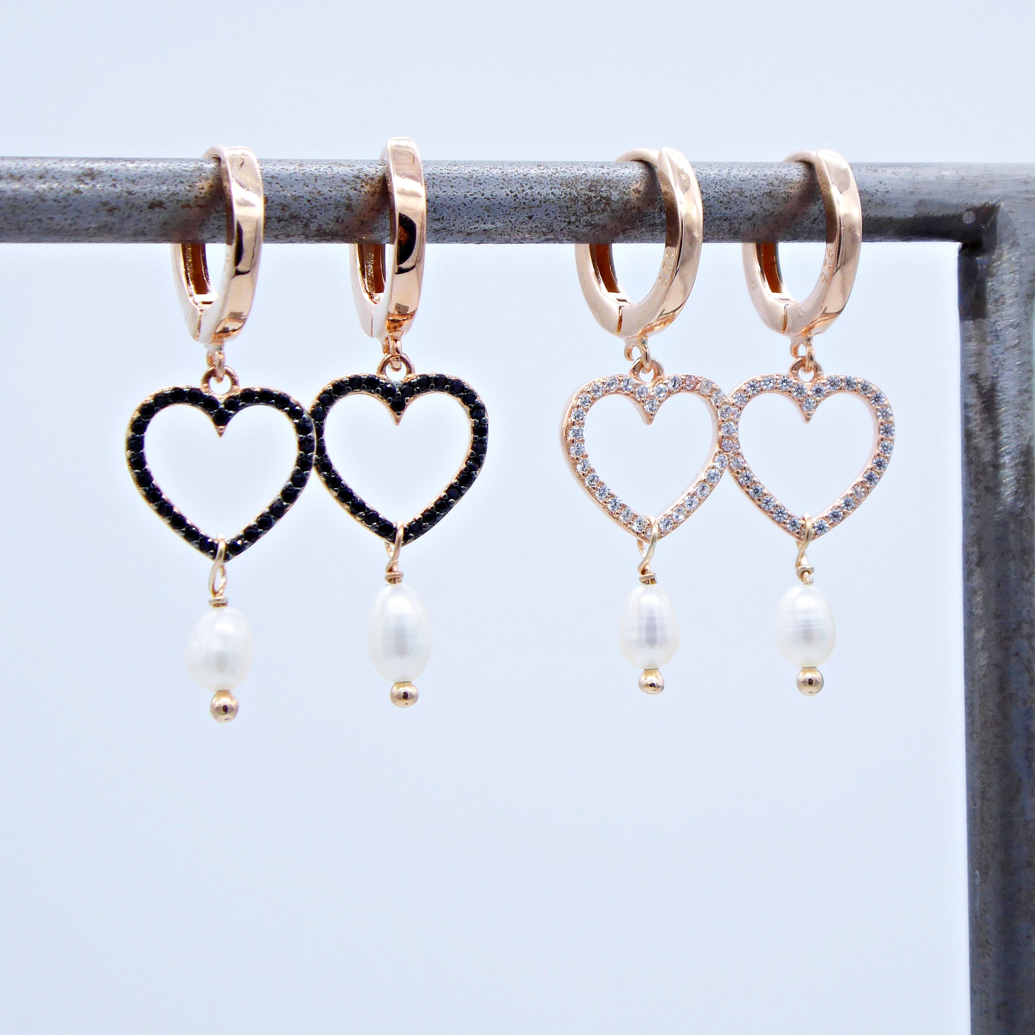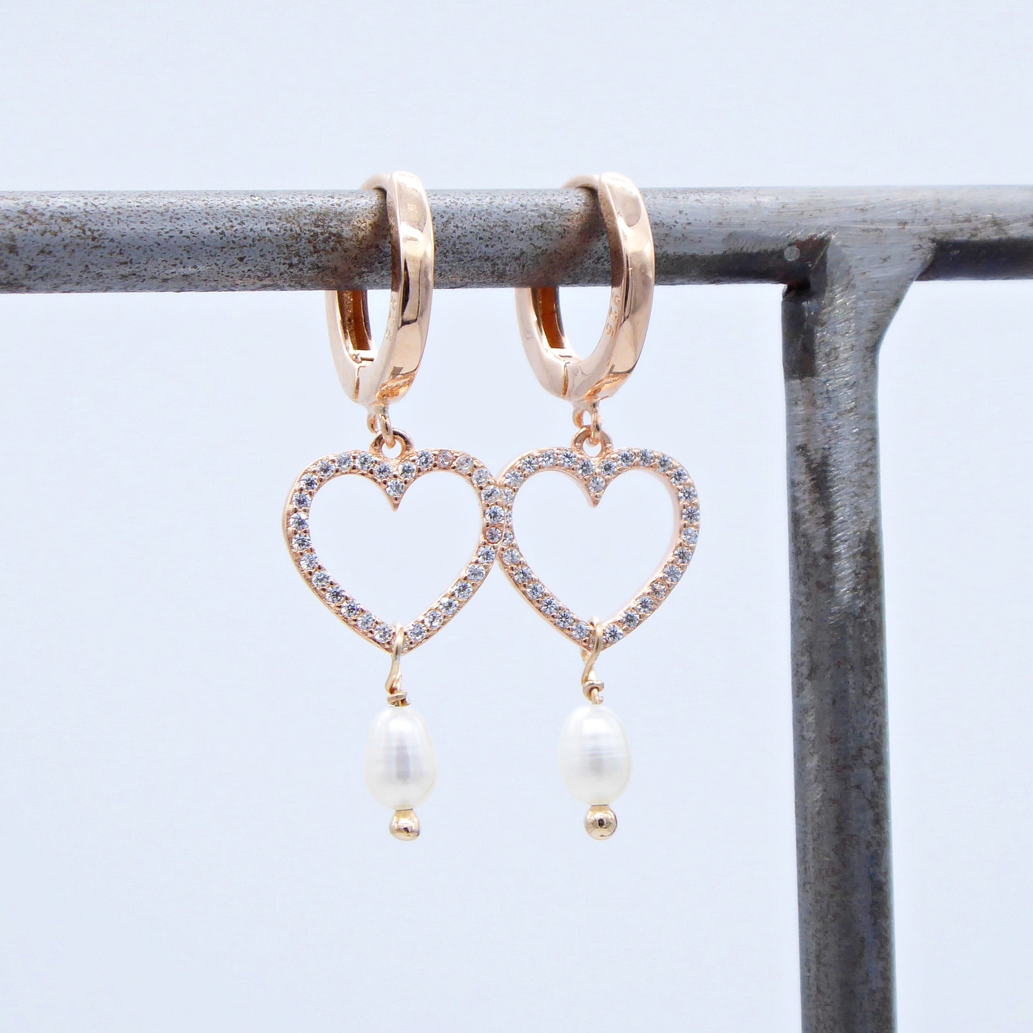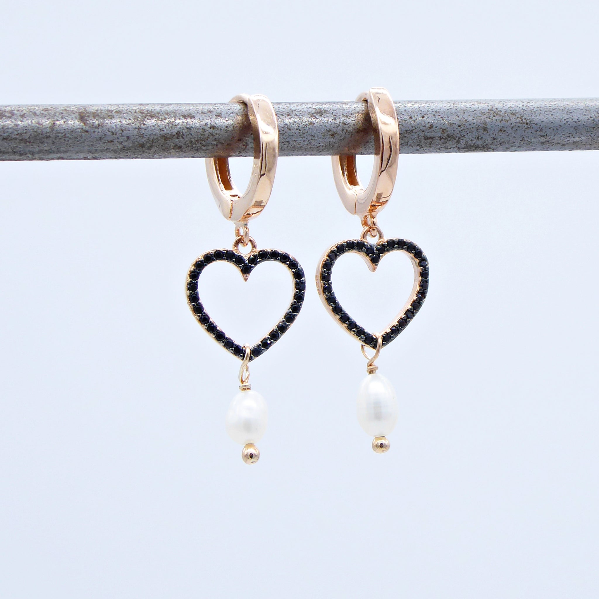 Orecchini a scatto con cuore zirconi e perla pendente O 174