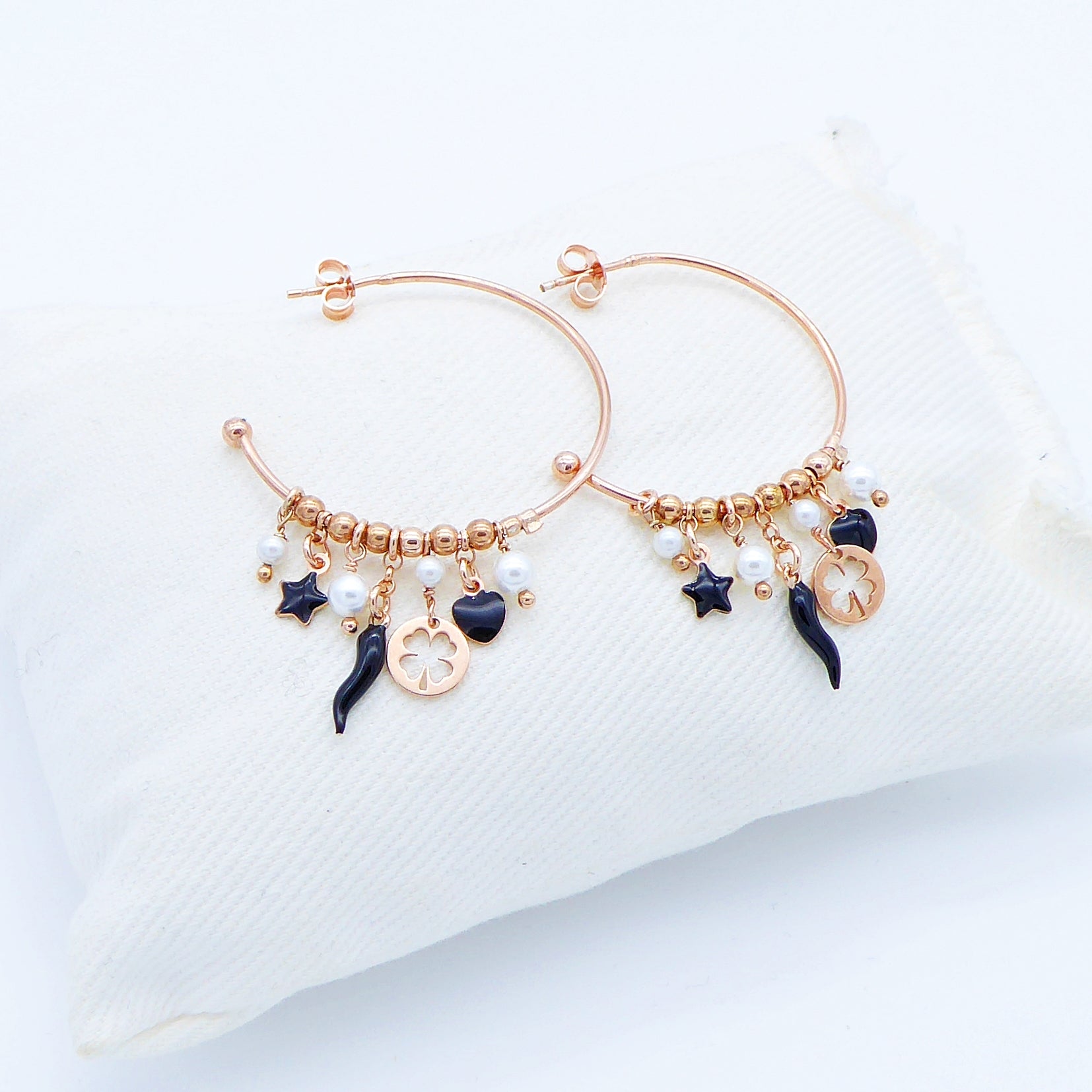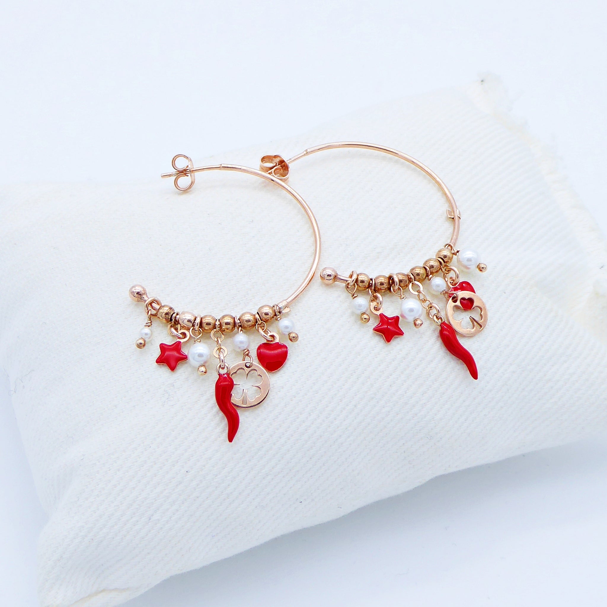 Ciondoli cornetto/cuore/stella in argento e smalto coordinato