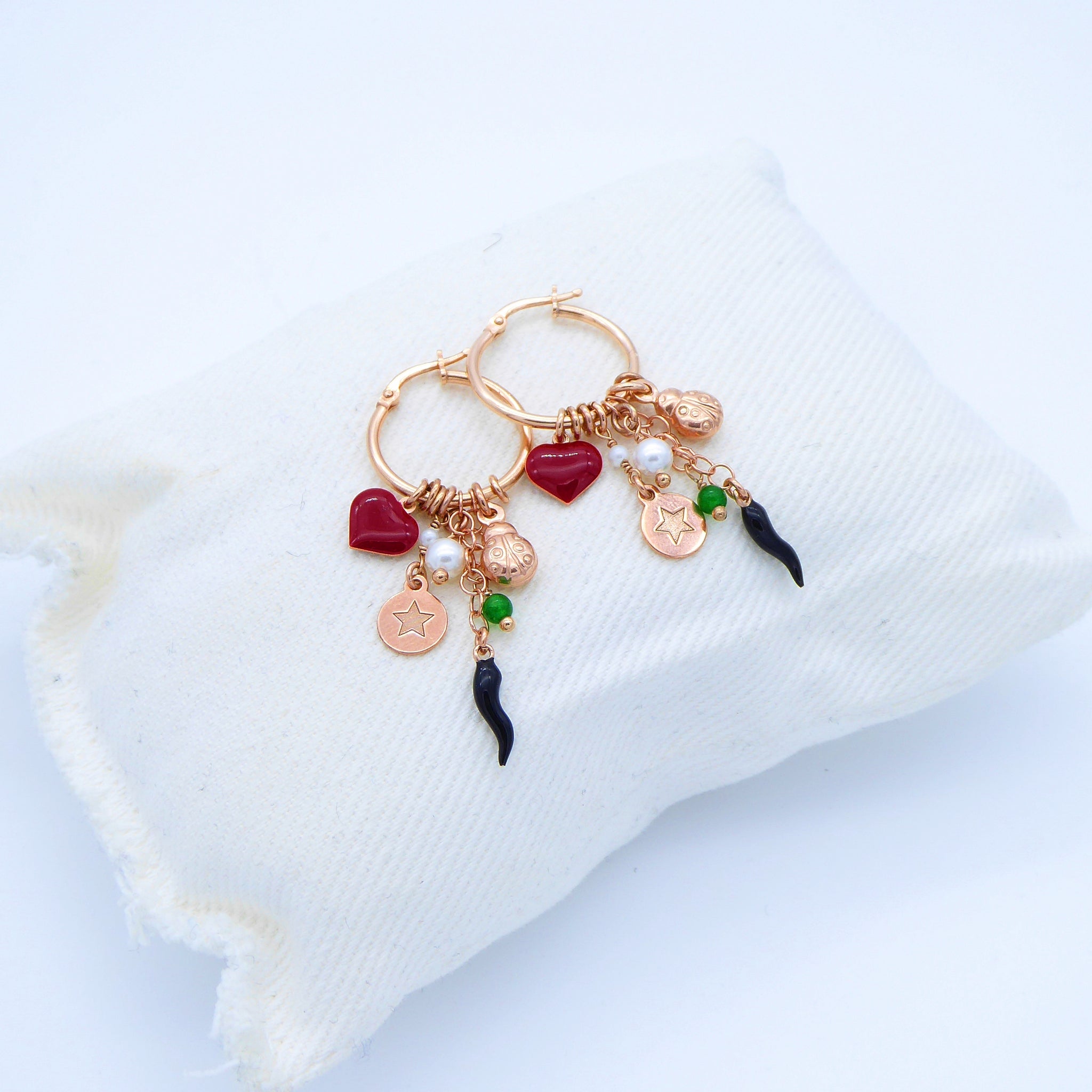 Orecchini cerchio con ciondoli misti e pietrine Ref. O 456