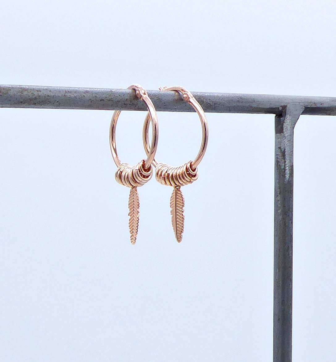 Orecchini intermezzi anelline e ciondoli piume Ref. O 364