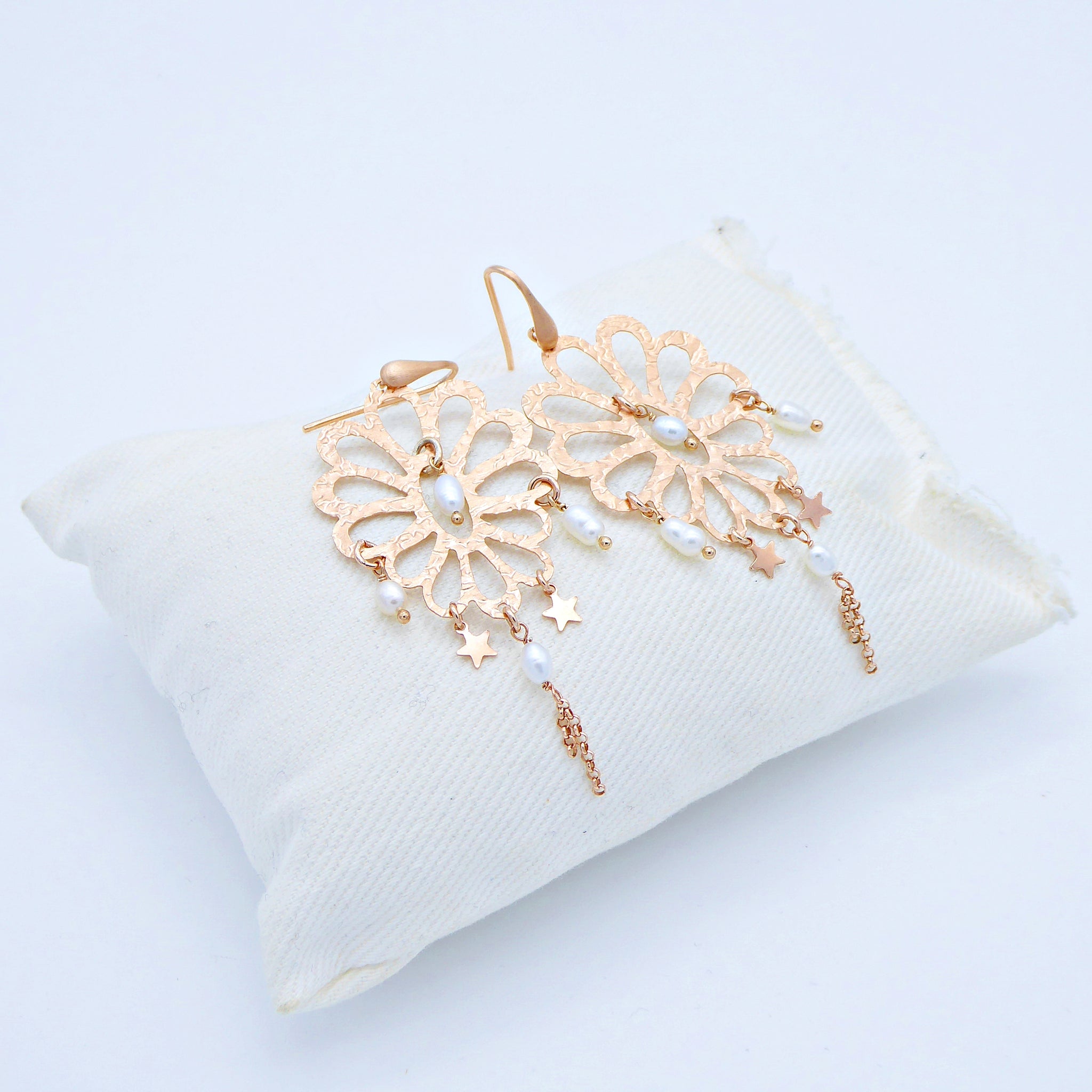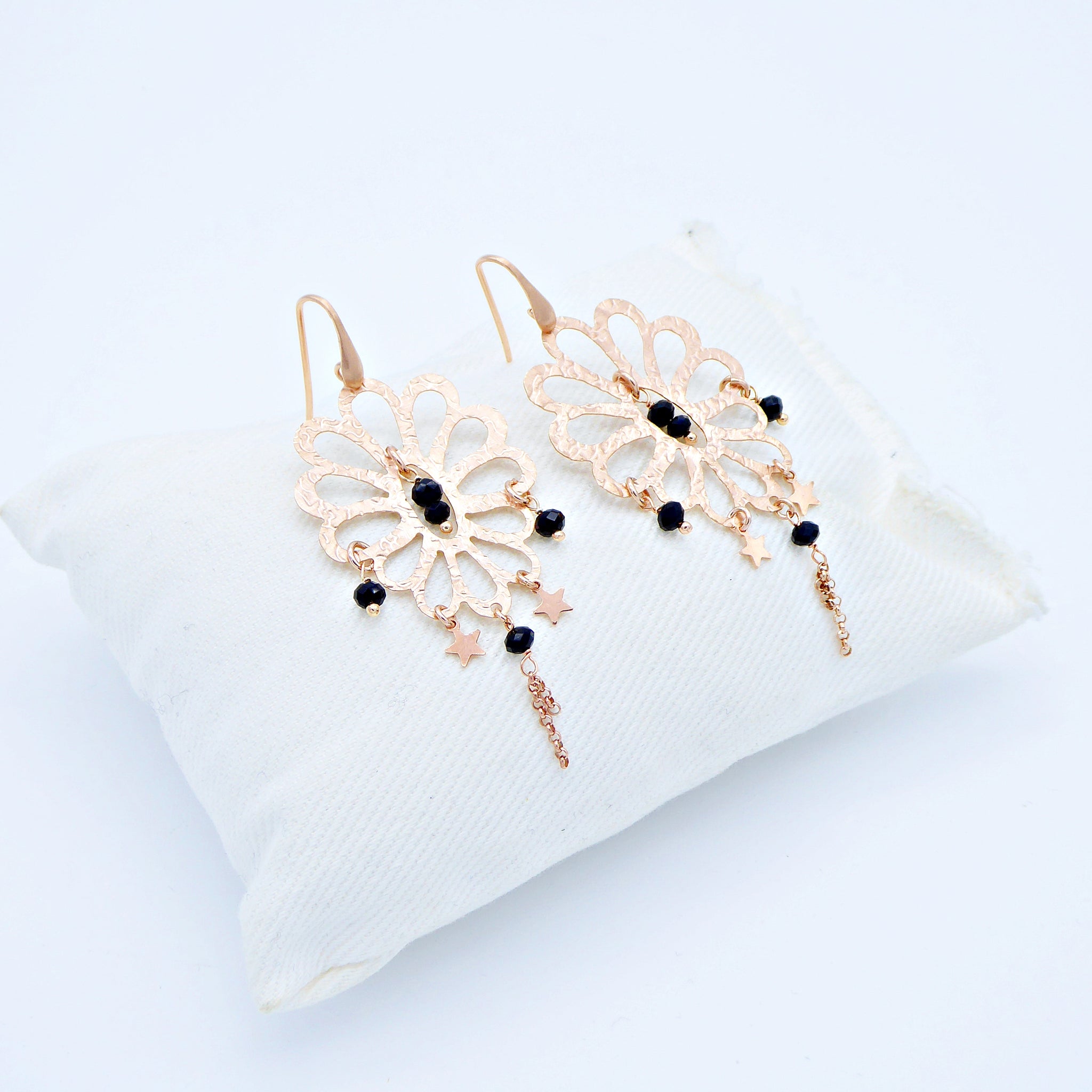 Orecchini lastra fiorita con stelle pendenti e pietrine O 924
