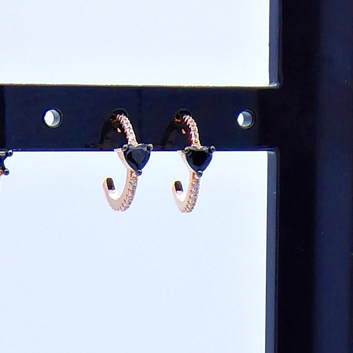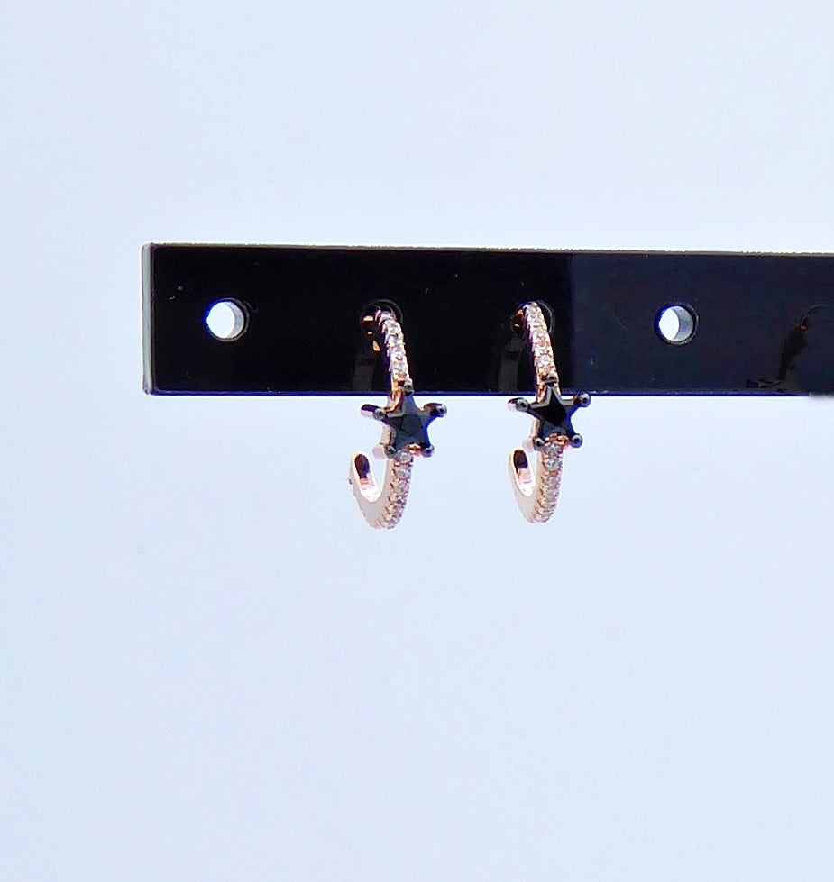 Orecchini mezzo cerchietto zirconi con cuore/stella nero Ref. O 248/HB