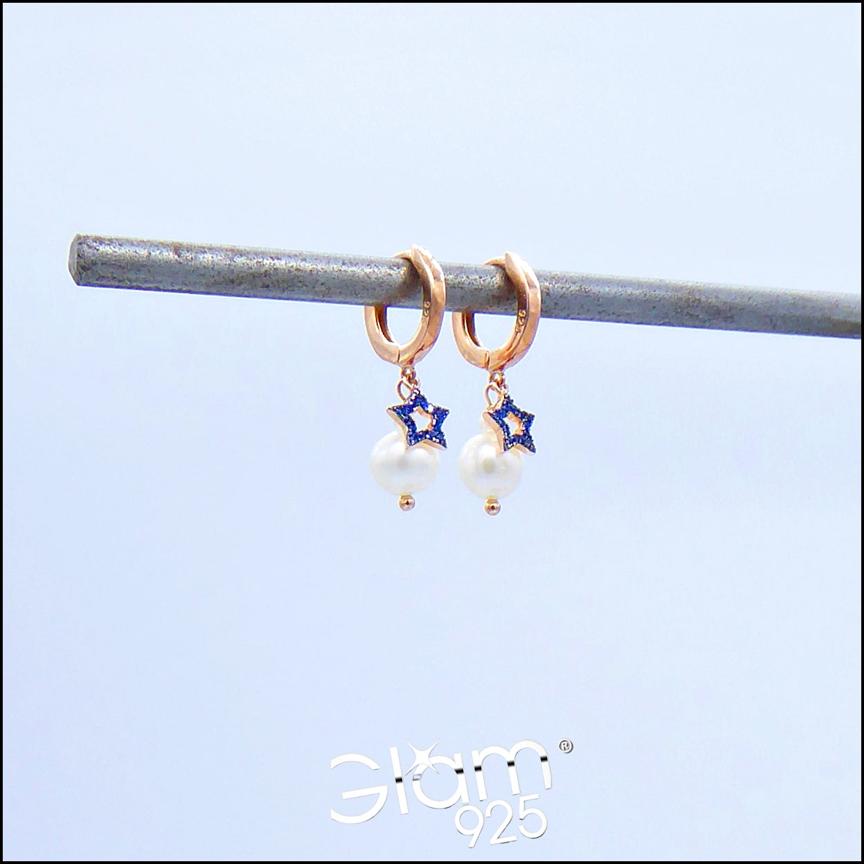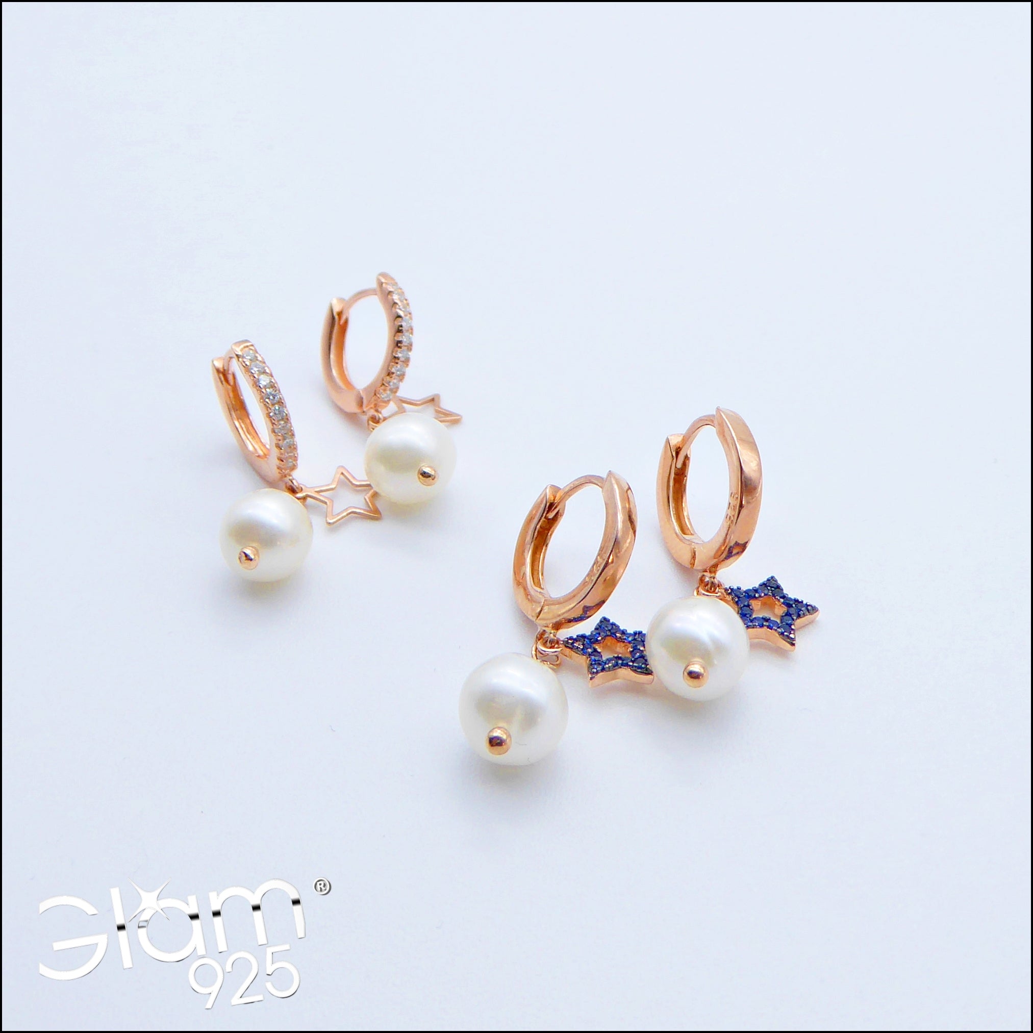 Orecchini scatto con con perle e stelle lisce o zirconi blu Ref. O 119 - O 416