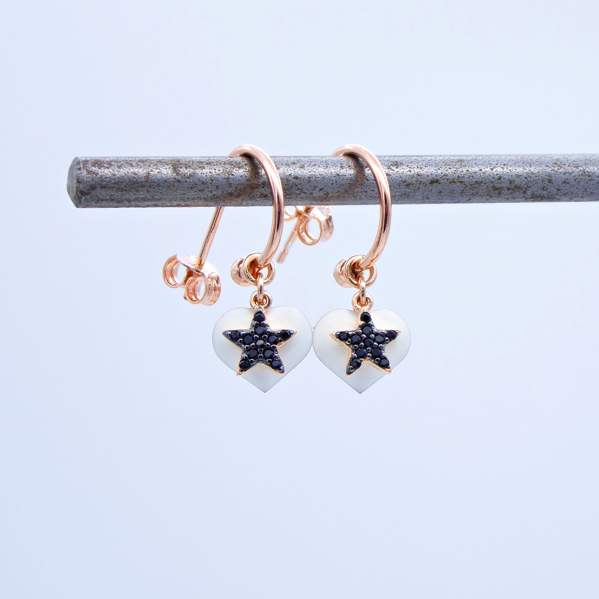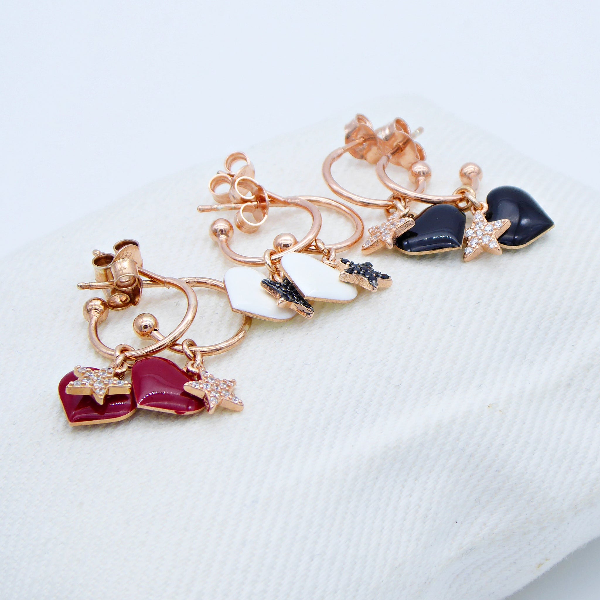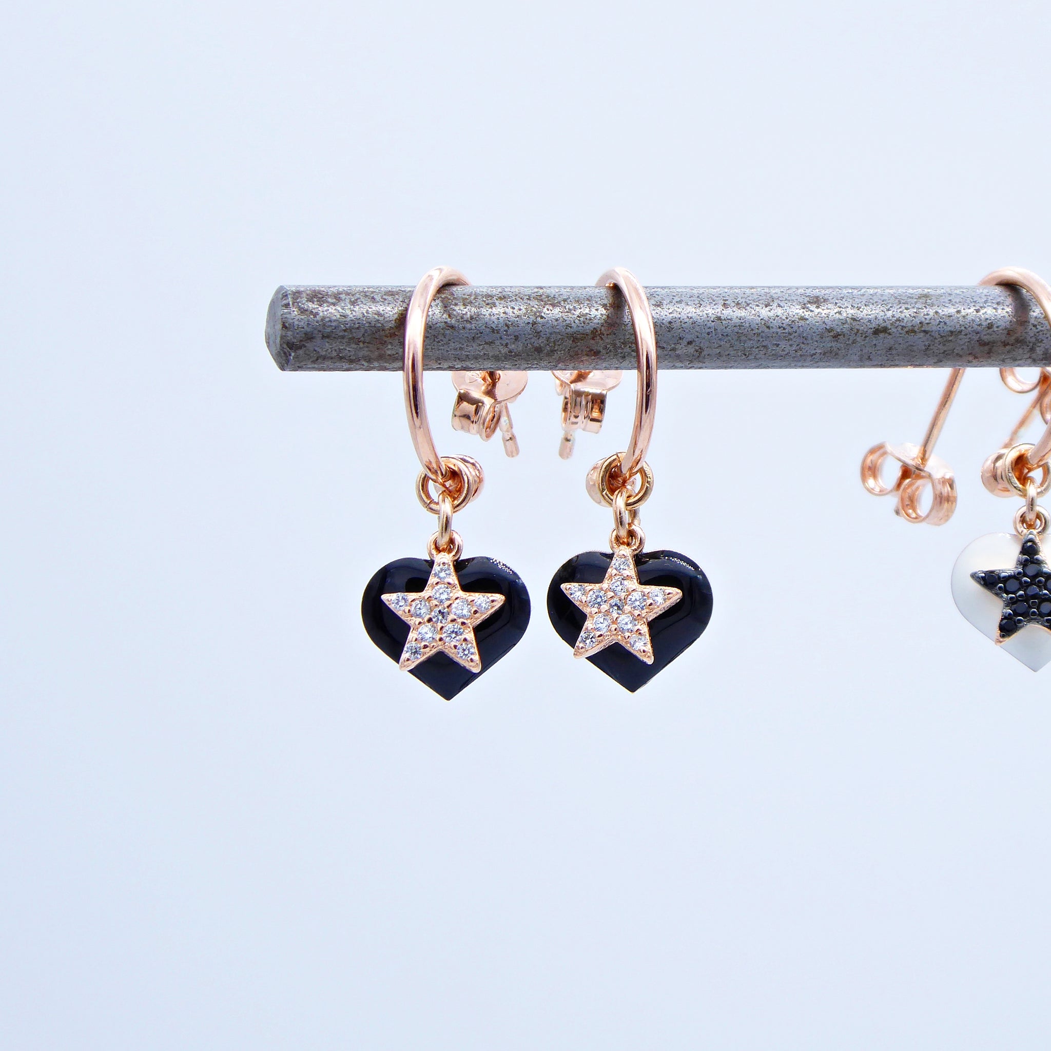 Ciondoli stella/quadrifoglio in argento rosa a pavè