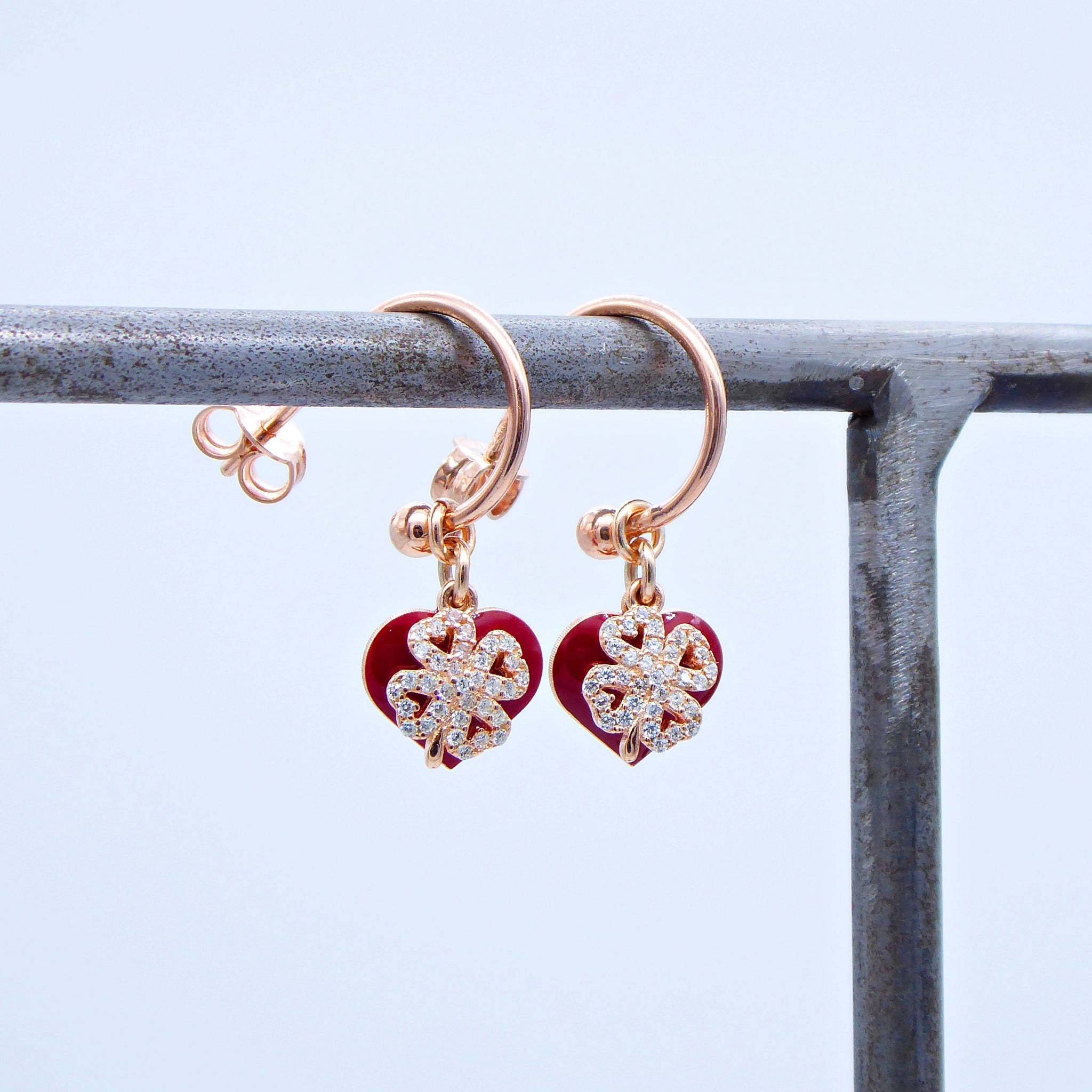 Cuore smalto rosso quadrifoglio zirconi bianchi