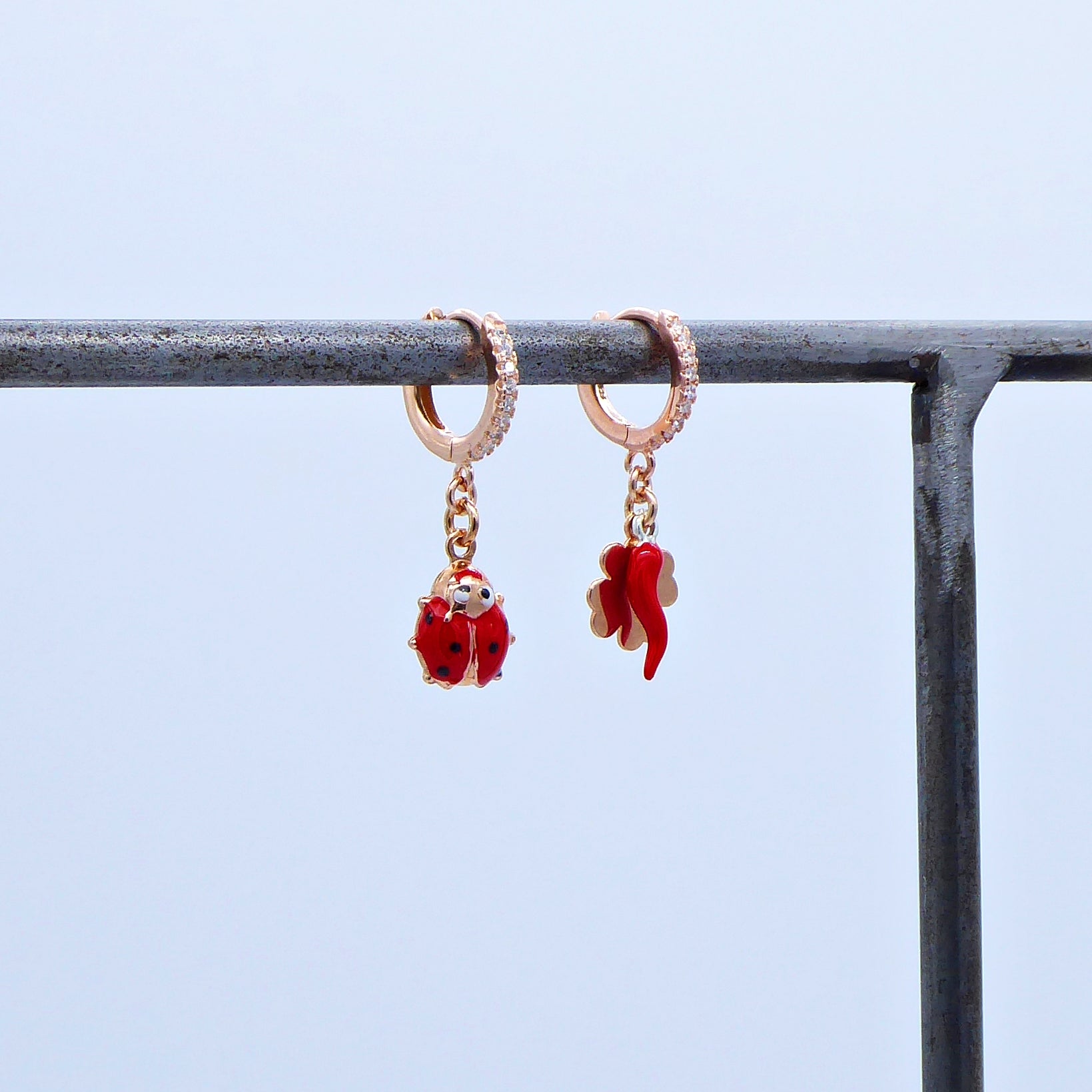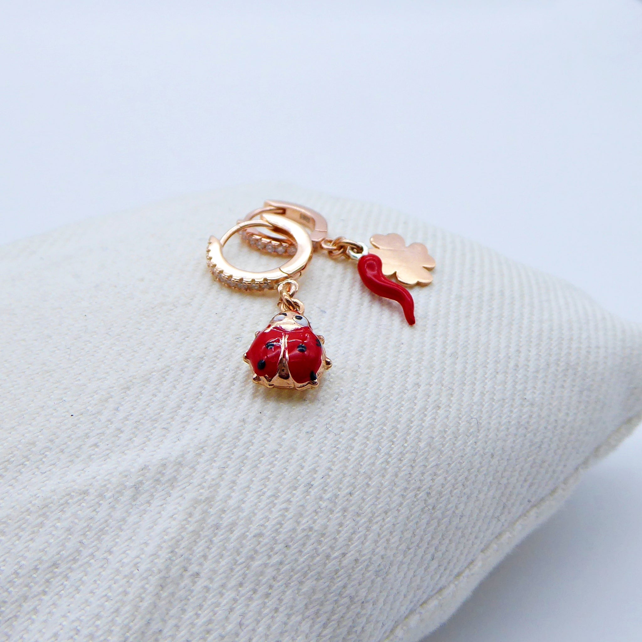 Orecchino cerchio sdoppiato cornetto/coccinella Ref. O 421