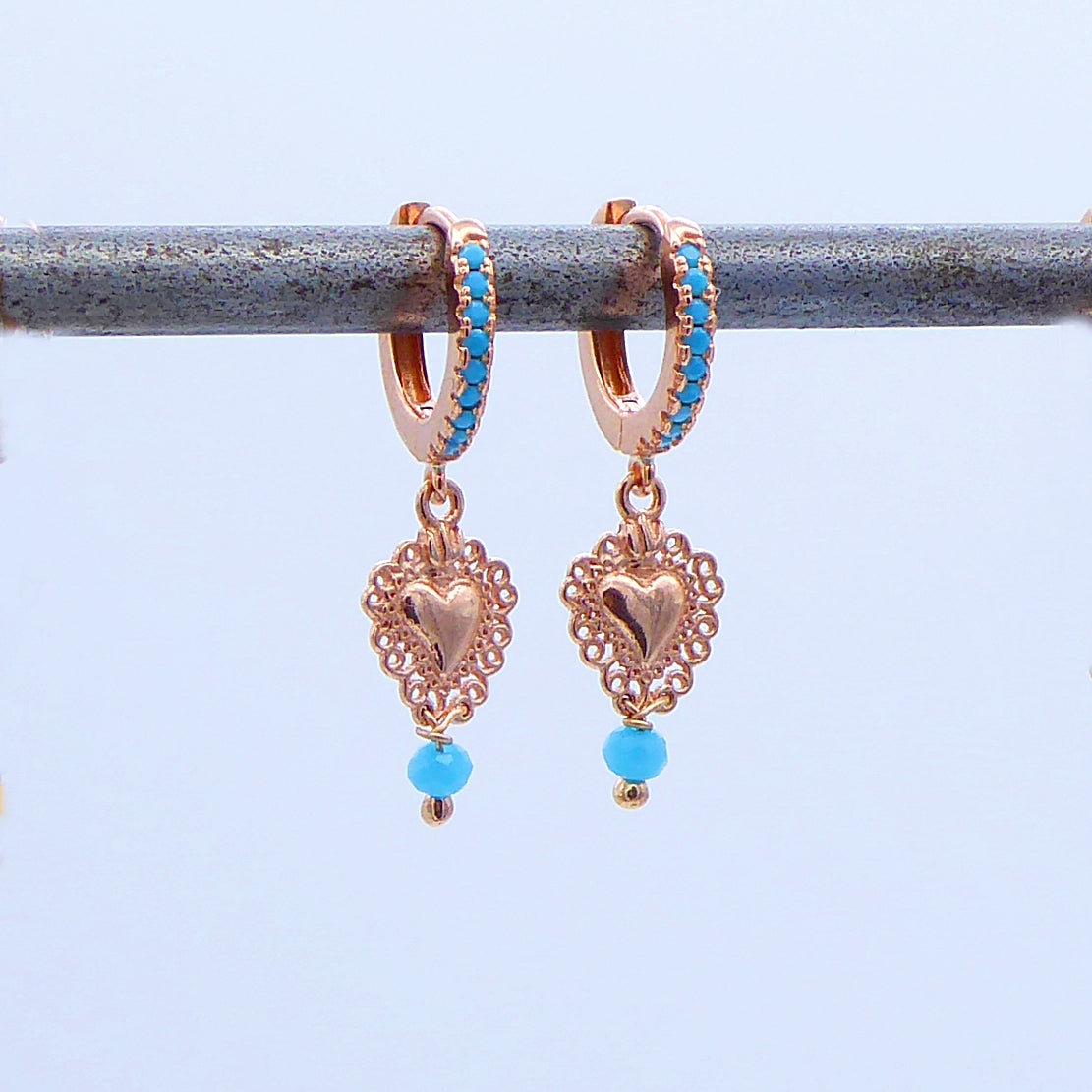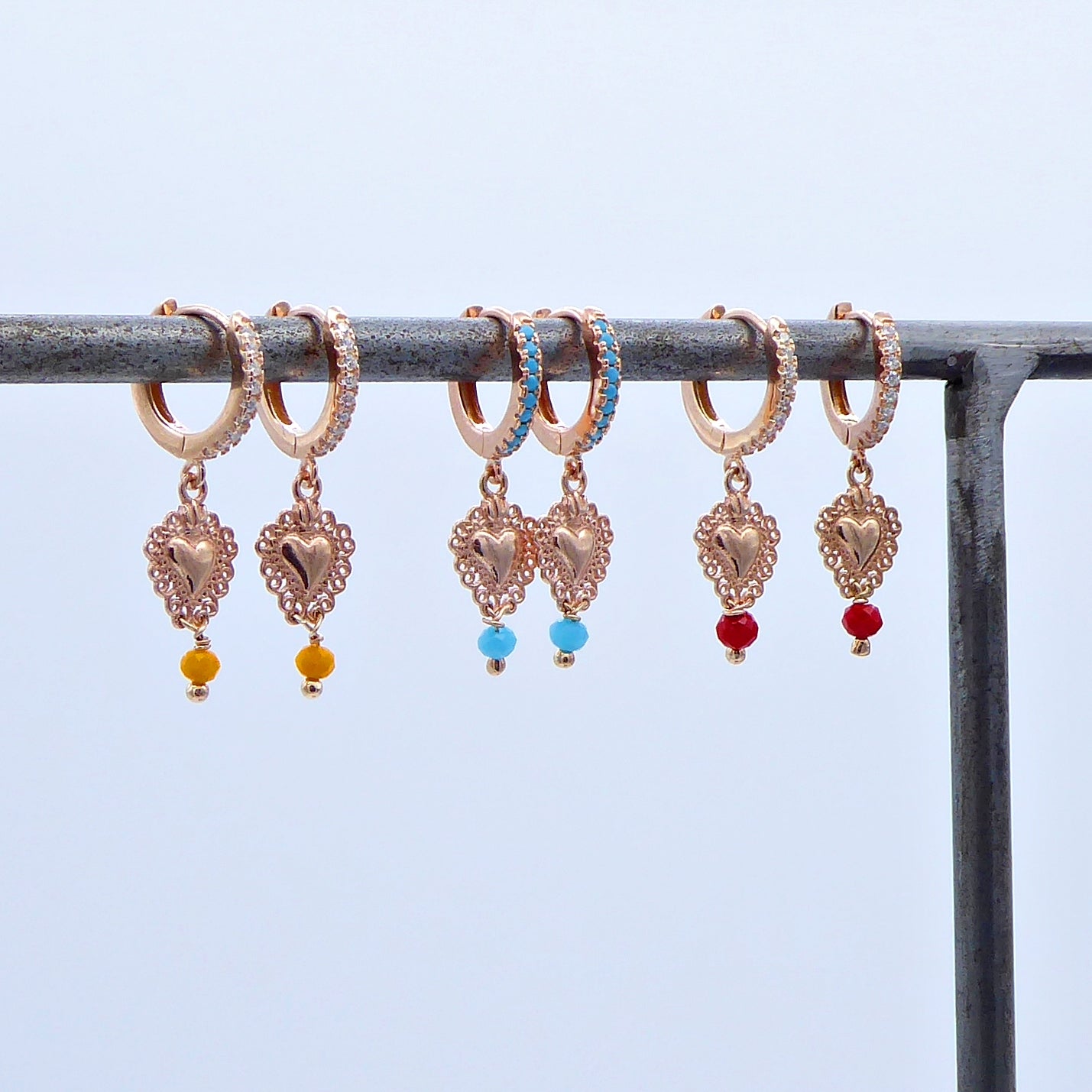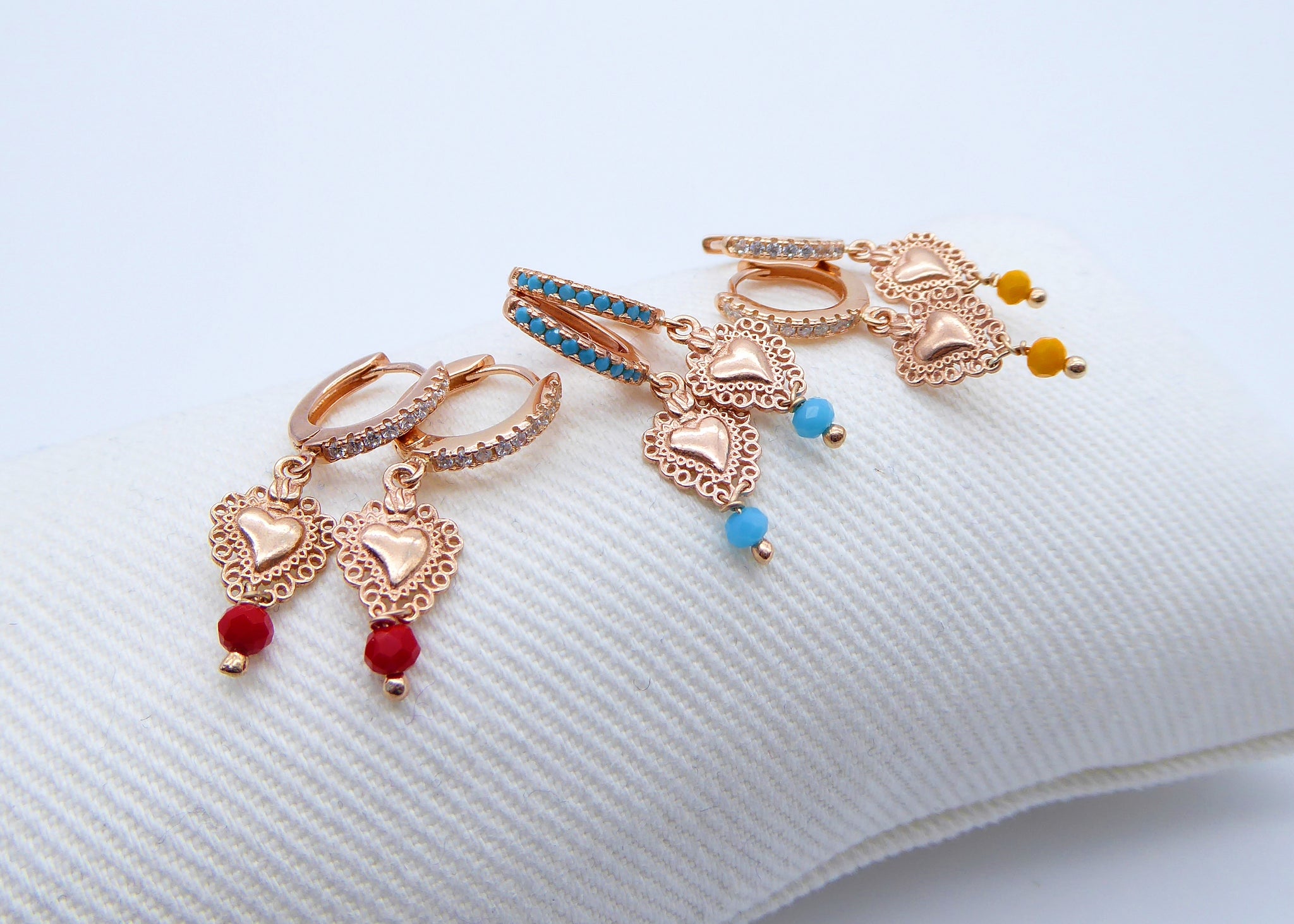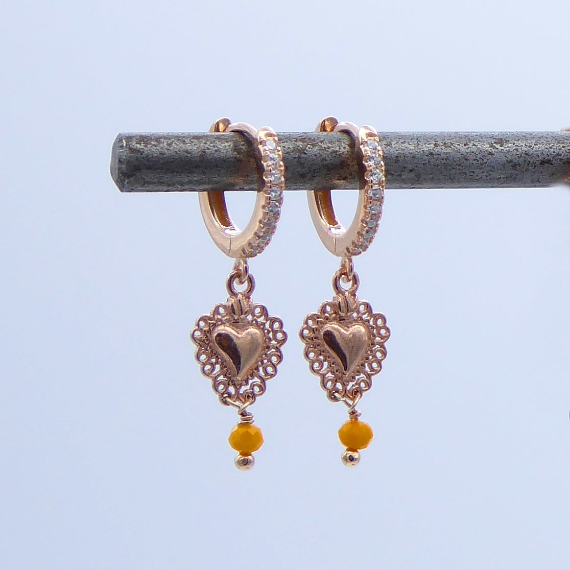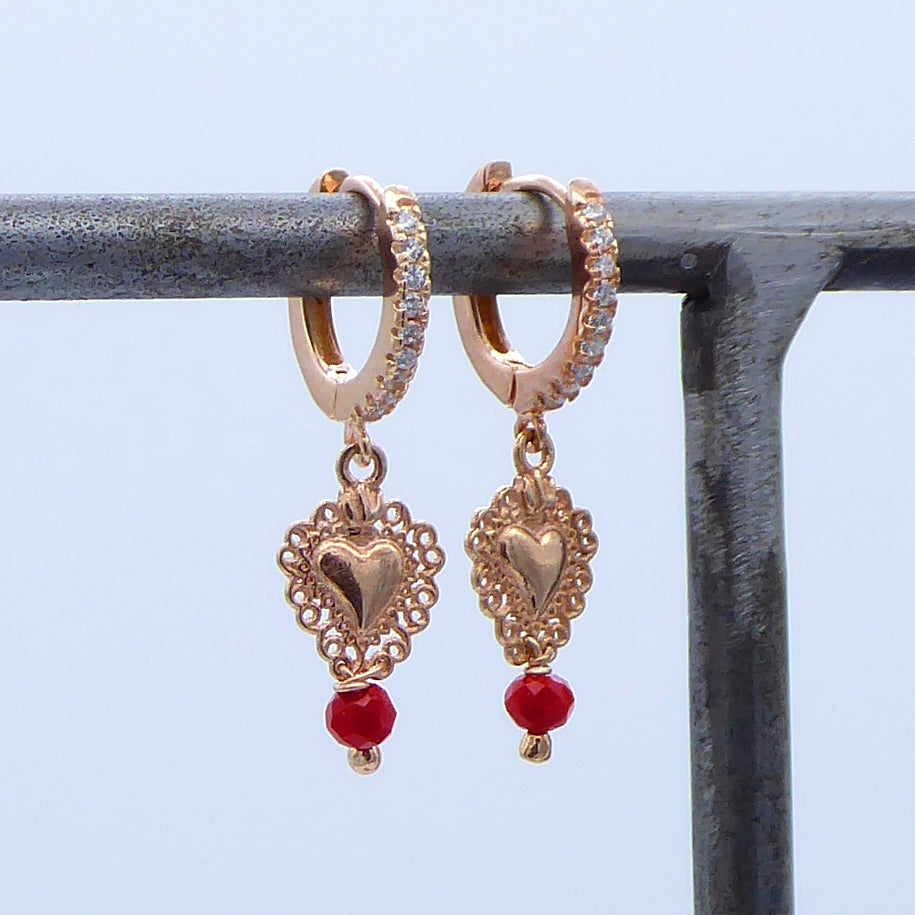 Orecchino scatto con cuore sacro mini e pietra Ref. O 855