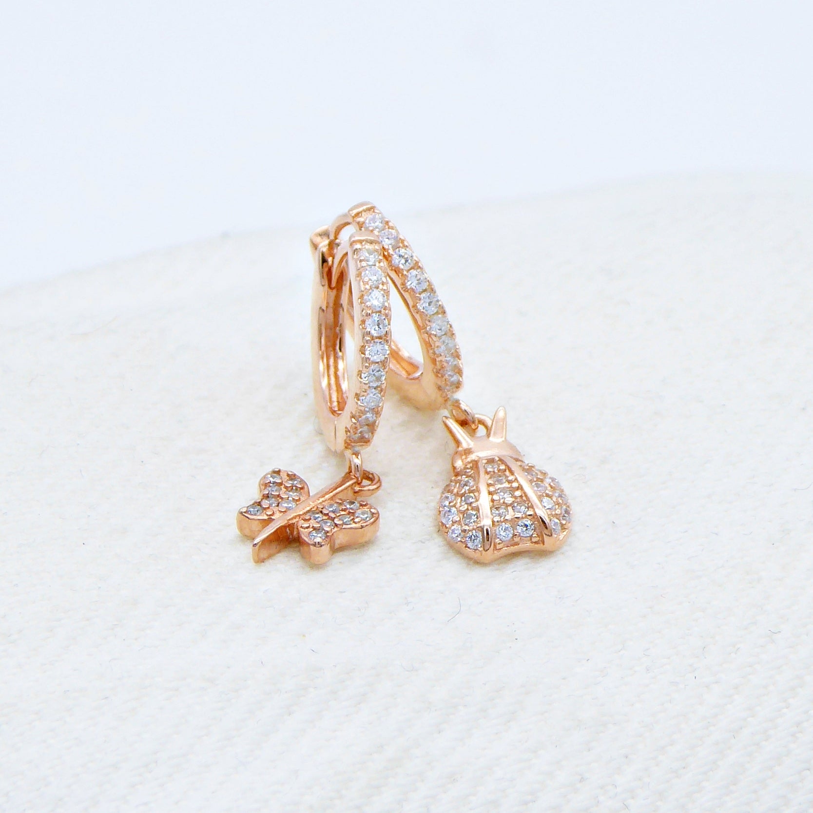 Ciondoli scombinati farfalla/coccinella zirconi a pavè