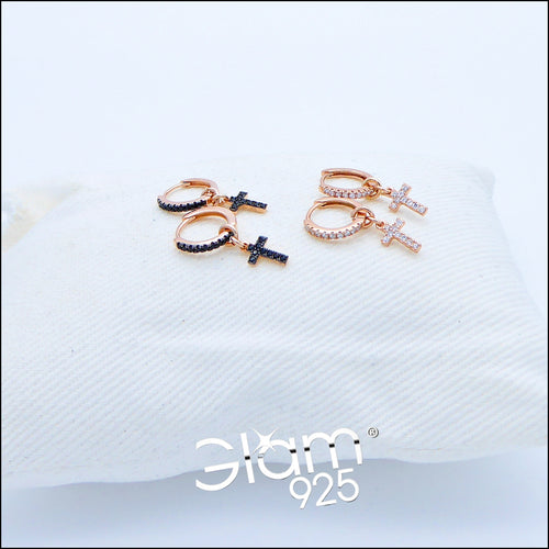 Orecchini a scatto con Crocette mini a zirconi colorati Ref. O218