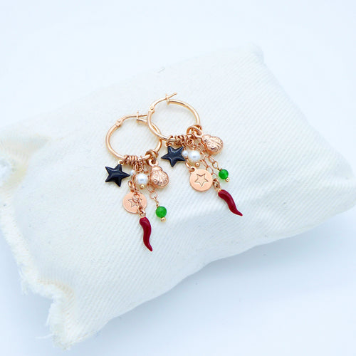 Orecchini cerchio con ciondoli misti e pietrine Ref. O 456