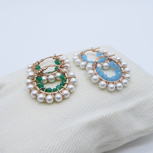 Orecchini cerchio perline e swarosky legati attorno O 676/2