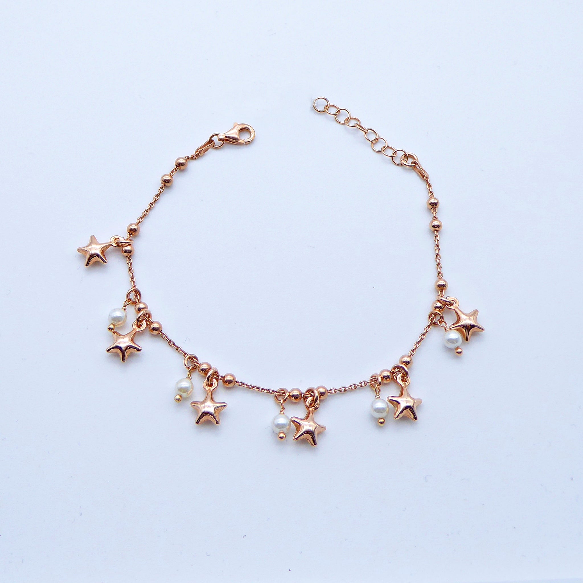 Bracciale a palline con perle e ciondoli Cuori/Stella mini bombati Ref. B 177