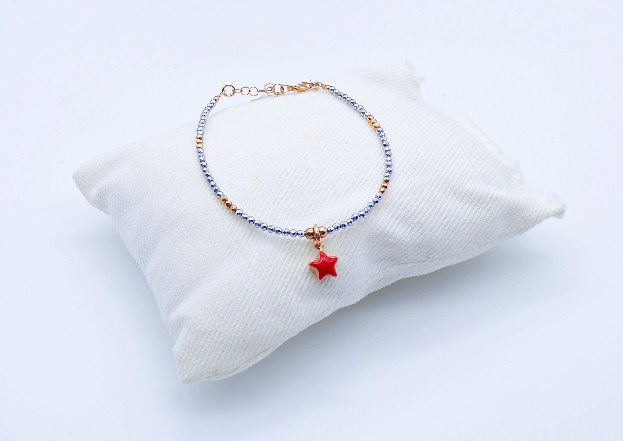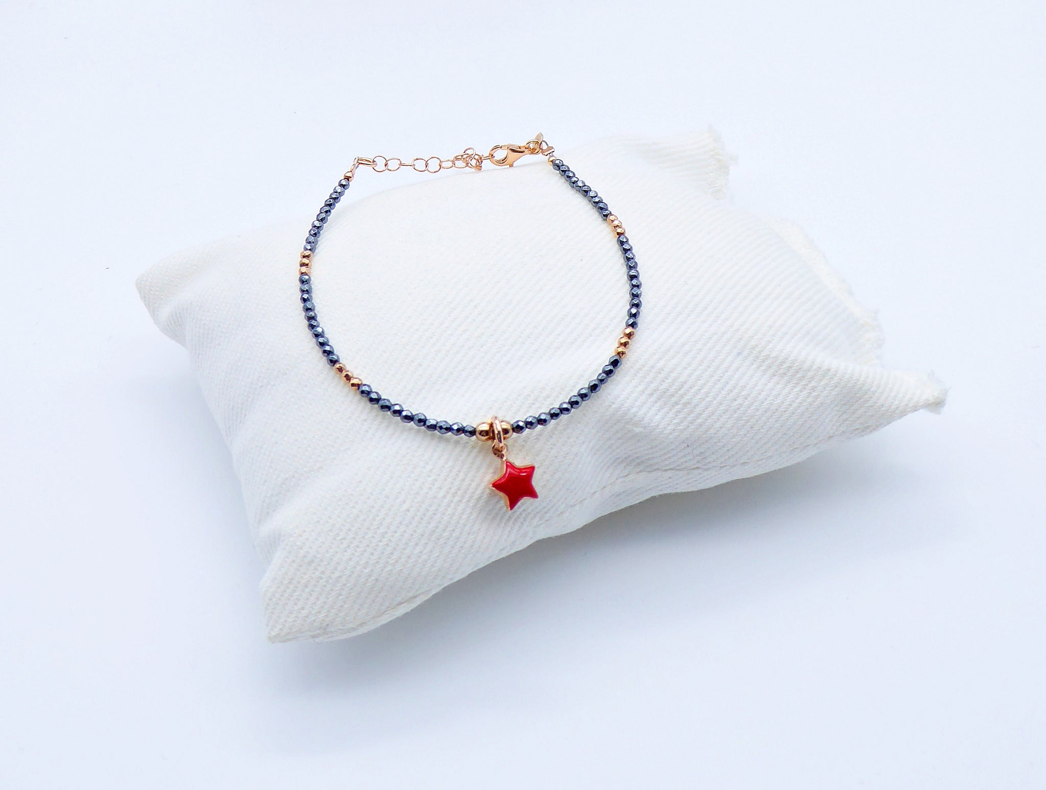 Bracciale ematite ciondolo cuore/stella smaltato Ref. B 170