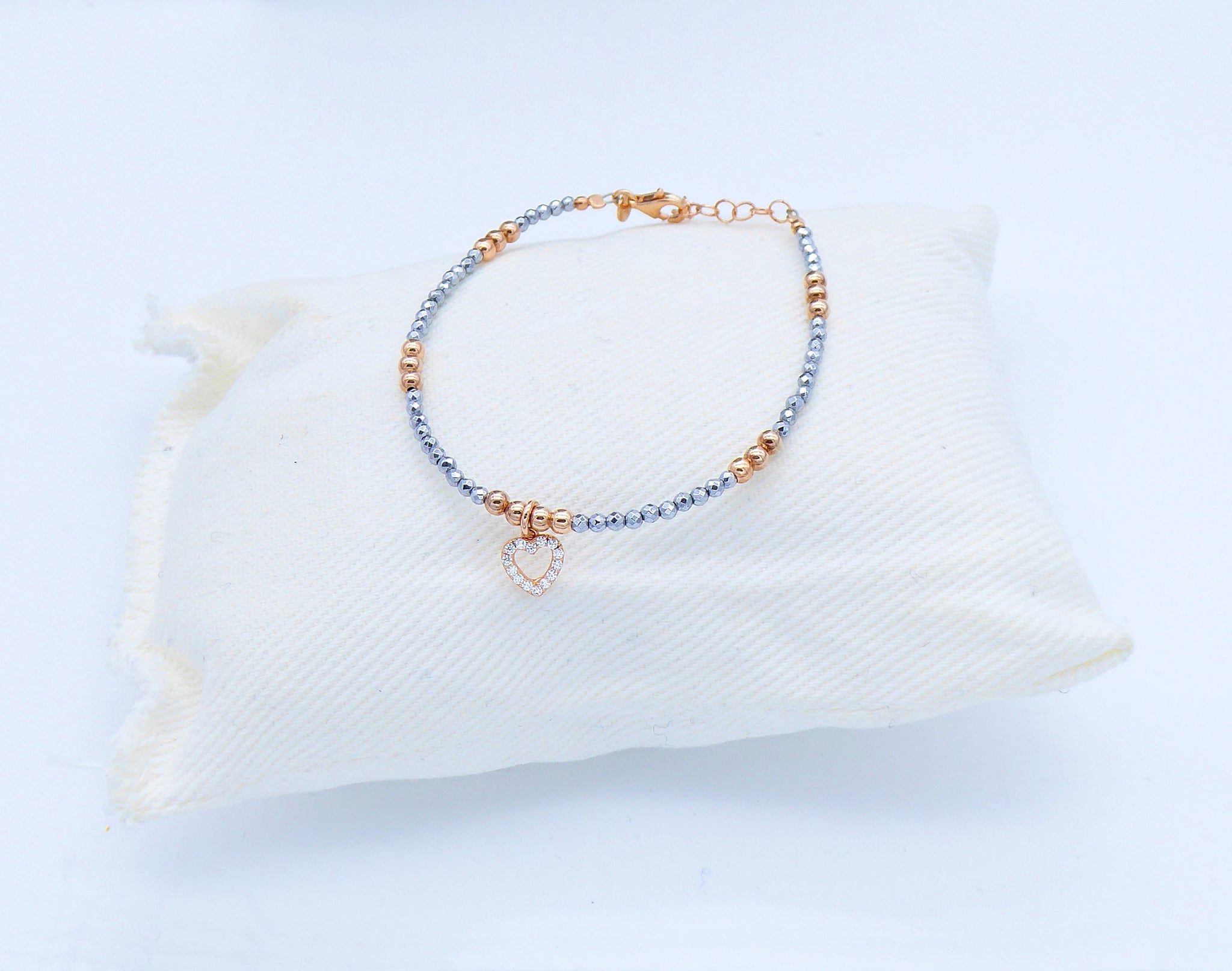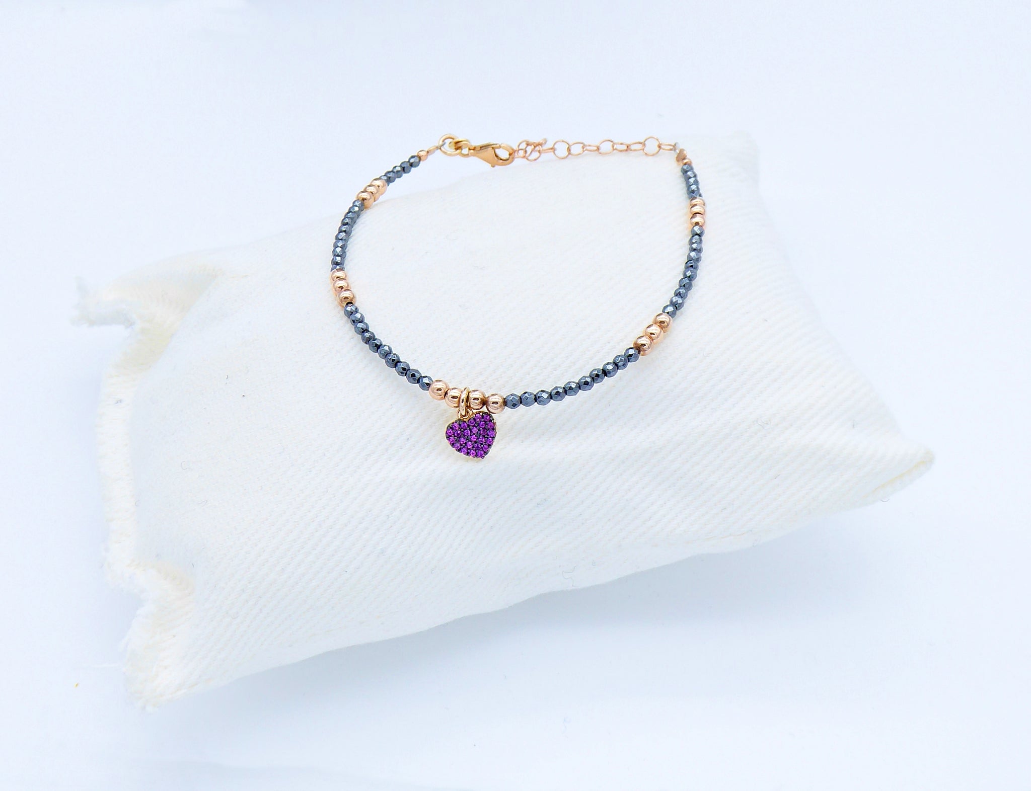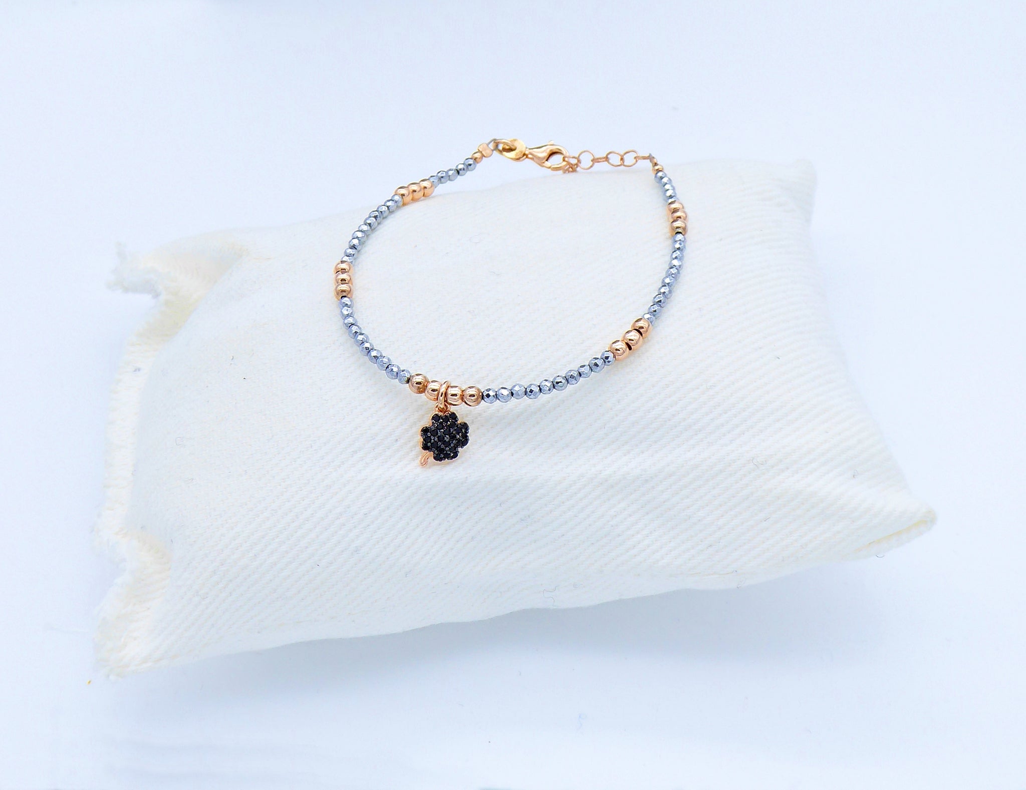 Bracciale Ematite 2mm placcata rosa e bianca e nera
