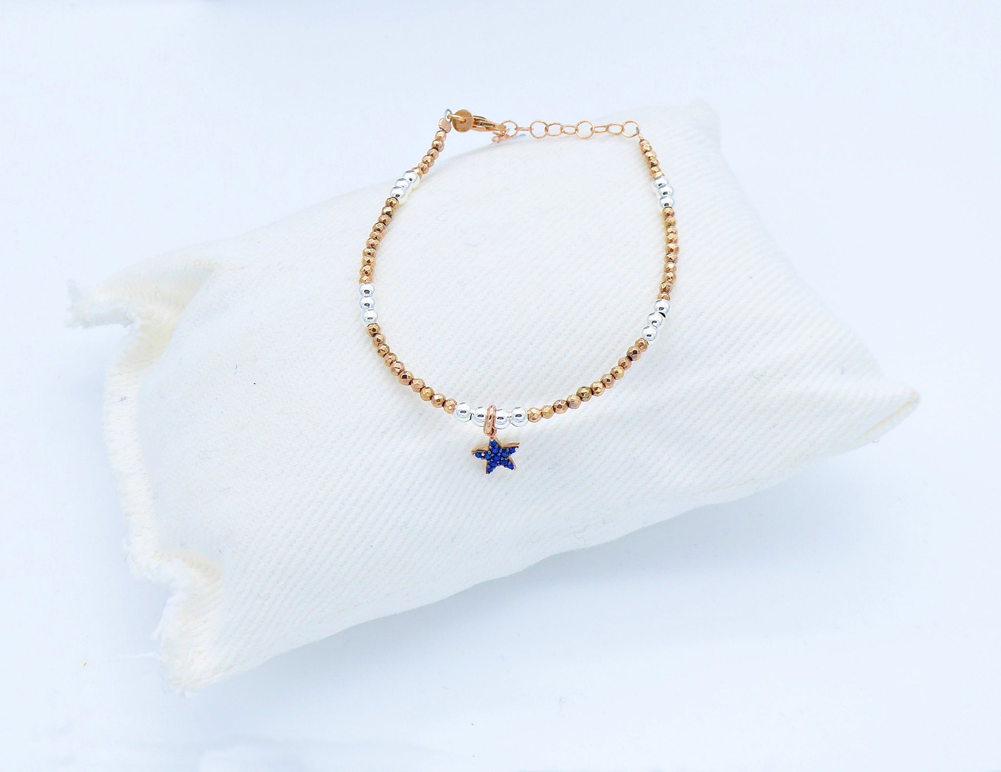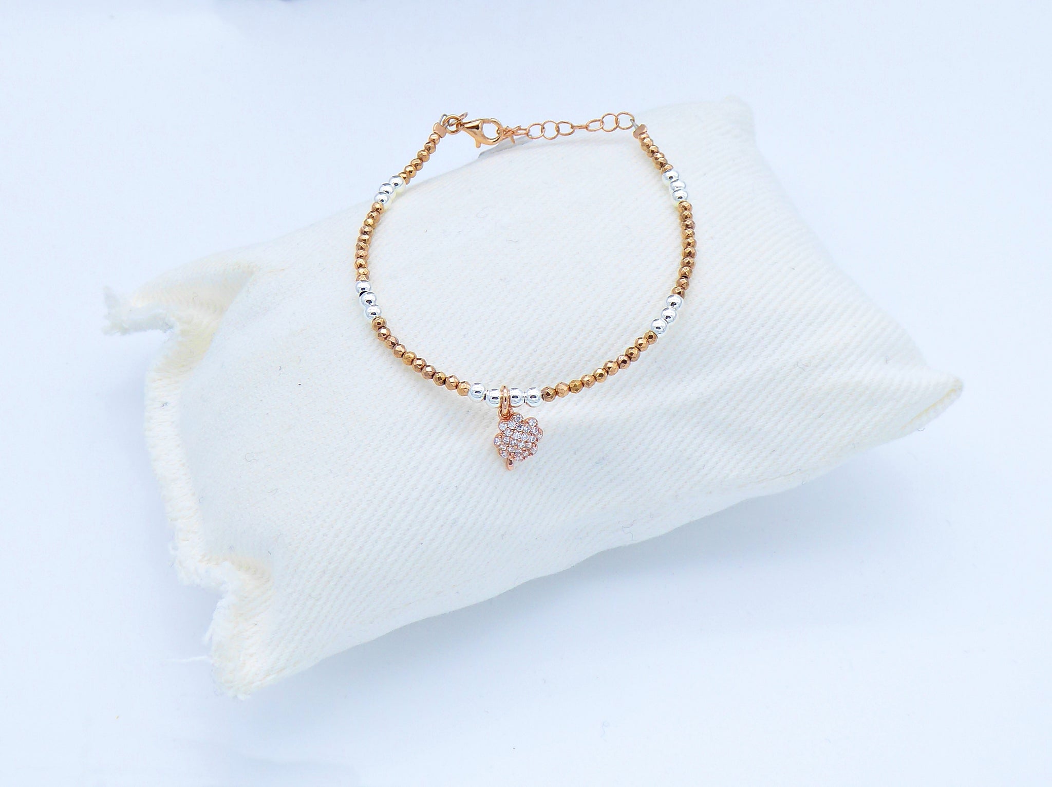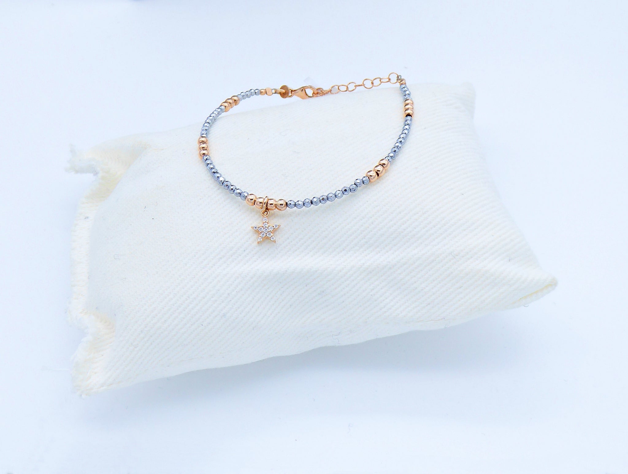 Bracciale Ematite 2mm placcata rosa e bianca e nera