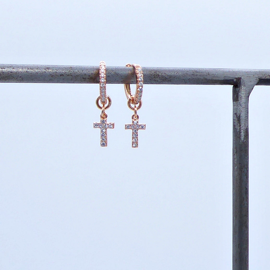 Orecchini a scatto con Crocette mini a zirconi colorati   Ref. O218